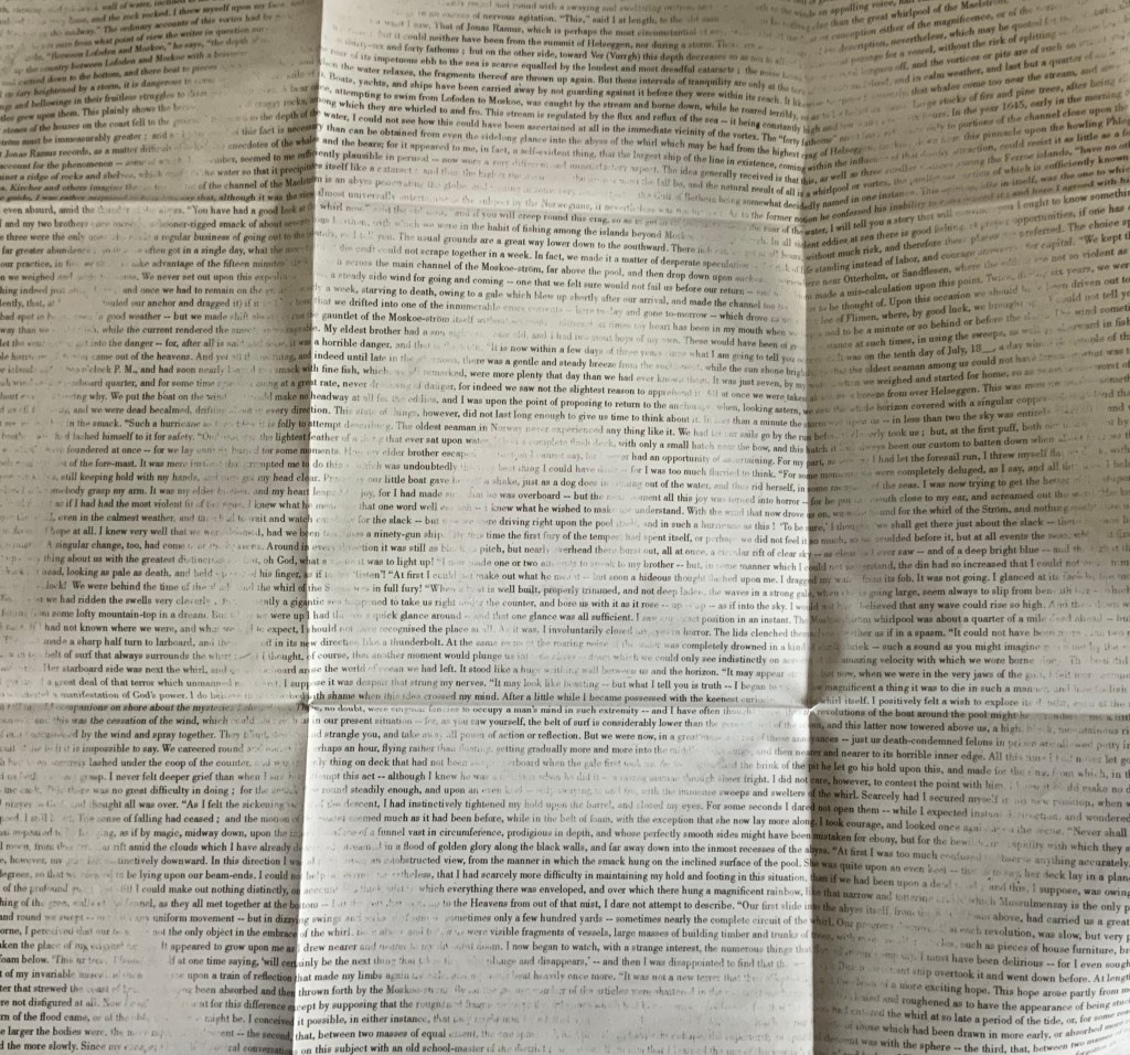 Bennequin’s choice of text also alludes to his other work. The short story’s themes of abyss, shipwreck and nothingness occur prominently in Poe-loving Mallarmé’s Un Coup de Dés Jamais N’Abolira le Hasard, the 19th century poem that made us modern and launched (is still launching) scores of artists’ books paying material and conceptual homage. Bennequin is one of those artists.†