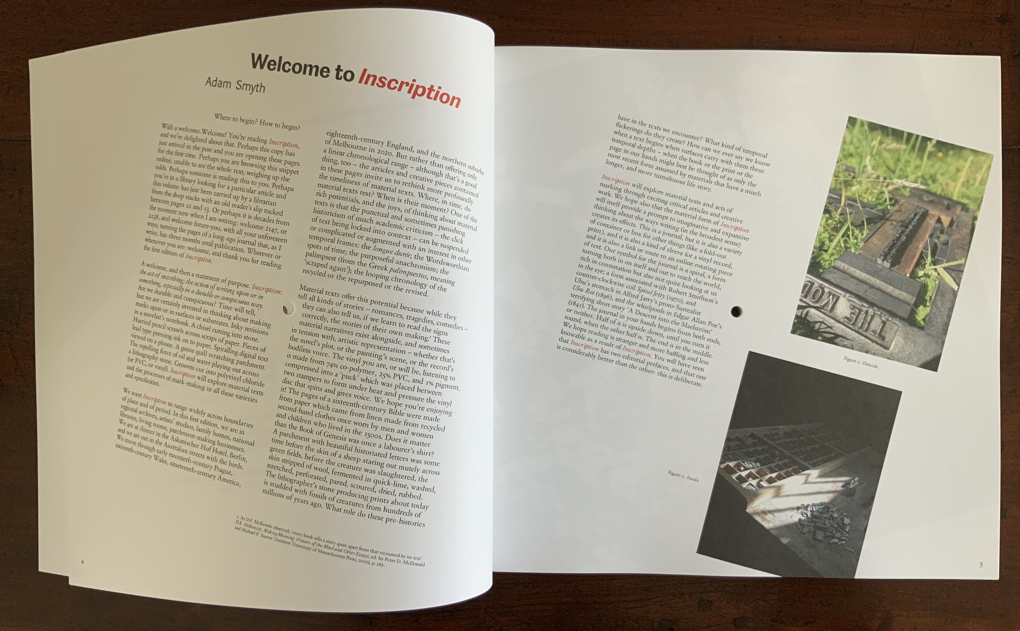 Inscription: the Journal of Material TextTheory, Practice, History, Issue 1 on Beginnings (2020)
