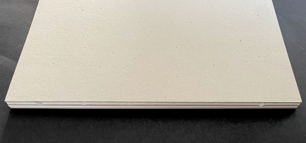 Reverse side of extended cover. Note the binding threads along the four spines/folds.