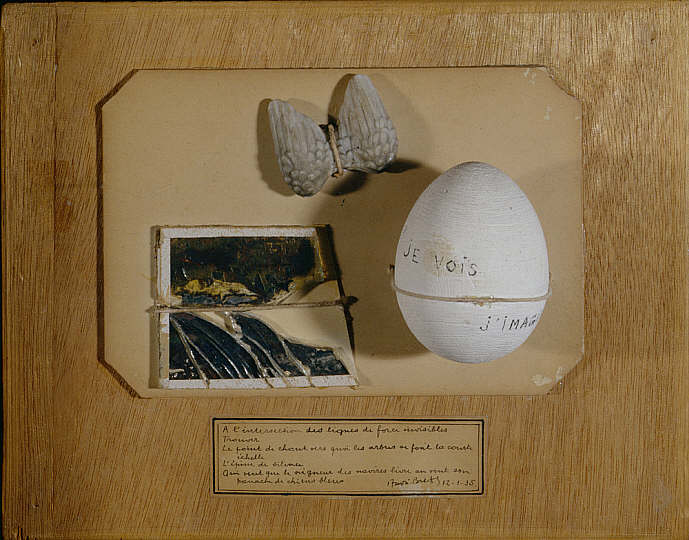 I stopped off at the Scottish National Gallery of Modern Art to see their fascinating “Witches and Wicked Bodies” exhibition. In their permanent collection is this work by André Breton, entitled Poème Objet (Poem-Object):