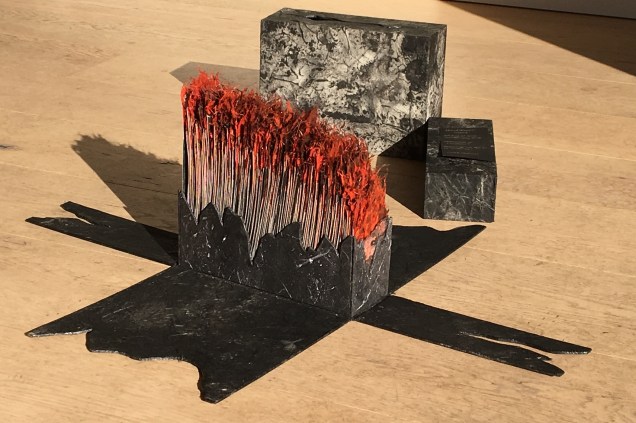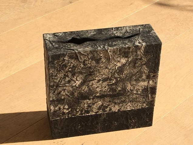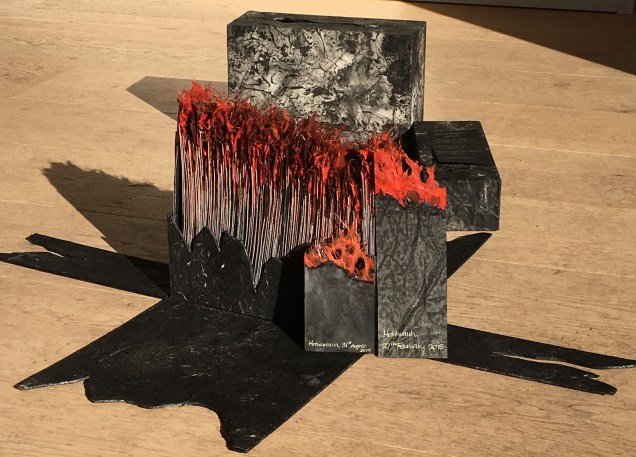 Ruston’s Holuhraun reflects that duality of nature’s destructive creation and creative destruction. The sides of the box falling away mimic the volcano’s production of new land. But the work is more subtle than that; it implicates the viewers in that duality. In taking apart the closed object, we “create” or, at least, reveal another object of art.