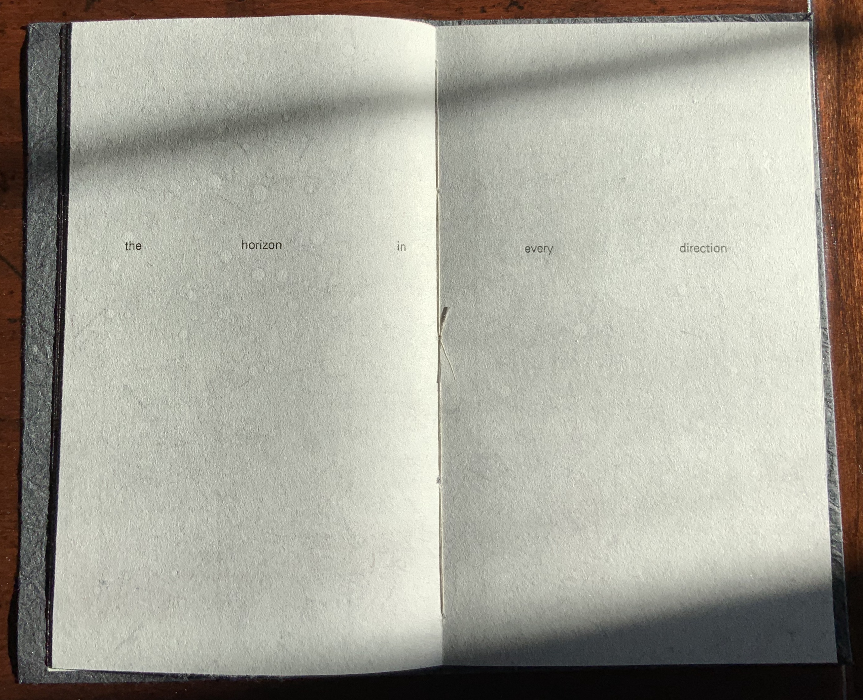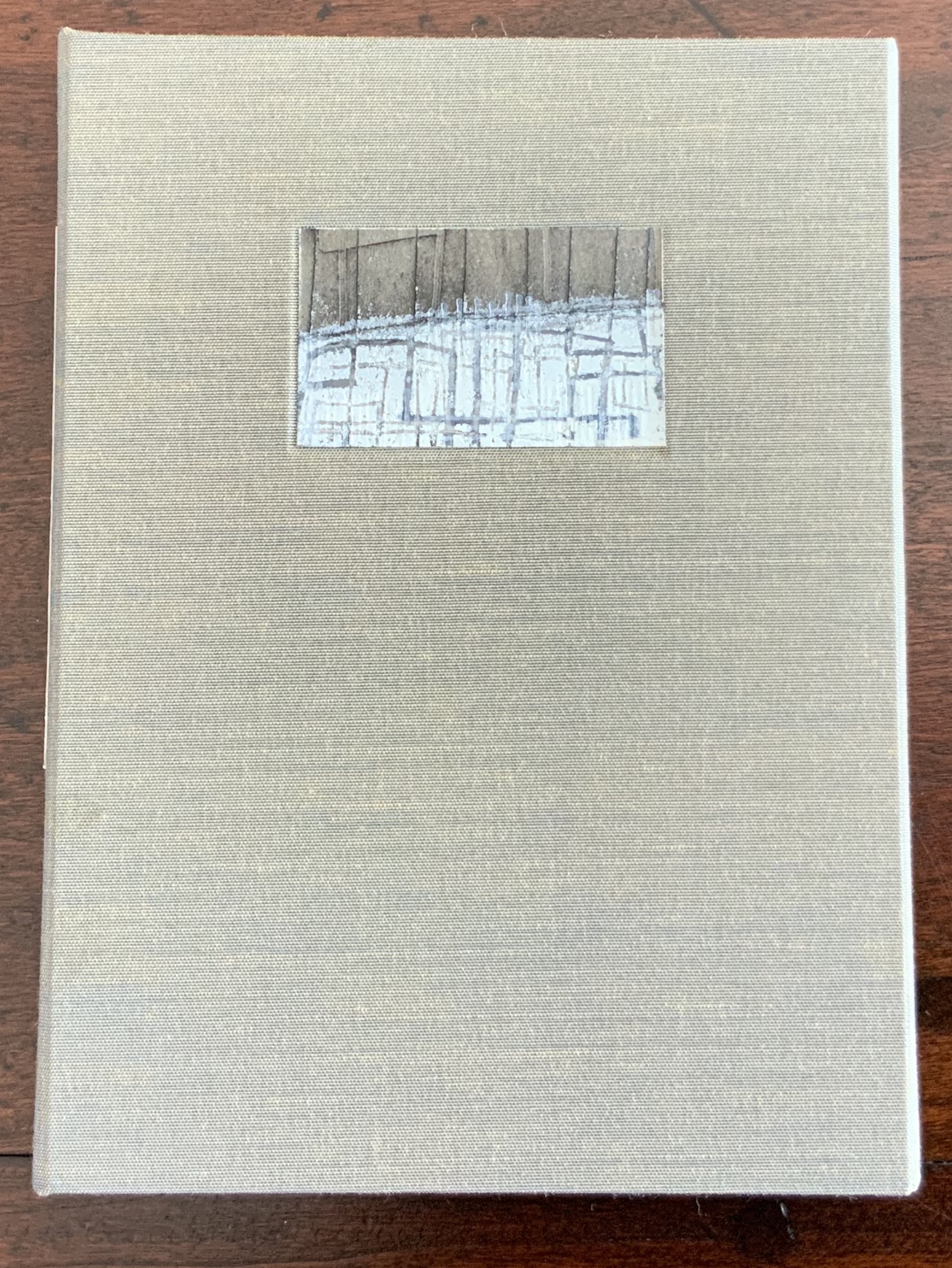 Hand-sewn booklet of twenty pages. Multi-layered collagraph prints. Hand-set Univers text. Cover paper Kyoseishi.
