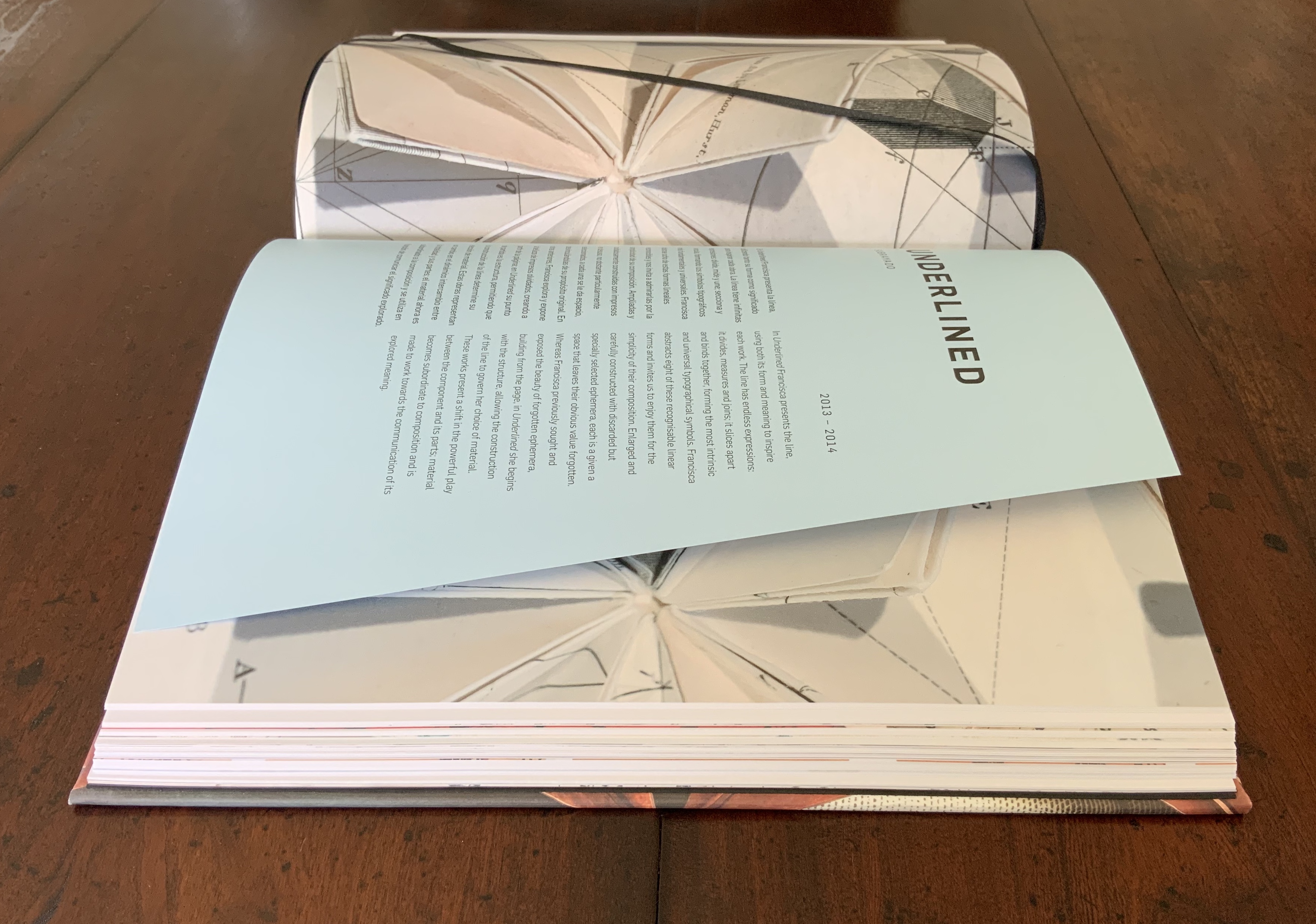 Francisca uses modular origami to extend the dimensions of the flat page and change the lines of its folds, producing a book that only makes sense when assembled as a three-dimensional icosahedron. When in a conventional format, bound with one spine, Francisca’s pages cannot be read. Creating a visual defiance from a material usually confined,