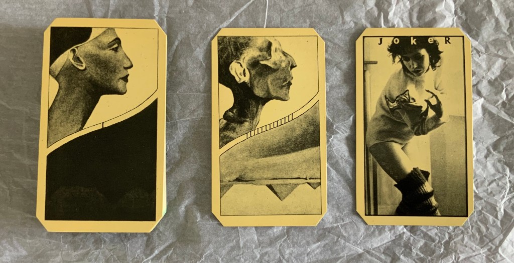 Egyptian Cards may be the joker in the pack for the Books On Books Collection. A deck of cards? A magic trick? A dos-à-dos flip book? Without doubt, it is another evocation of different frames of time passing. In one time frame, Nefertiti becomes a mummy.