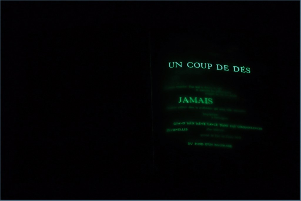 The first of della Olga’s works reflecting the influence of Mallarmé’s poem was Un Coup De Dés Jamais N’abolira Le Hasard – Constellation (2009), which was shown in the Gulbenkian’s “Pliure” exhibition in Paris in 2015. In a darkened room with an attendant turning the pages, the poem’s words, painted in phosphorescent powder, flickered into existence.