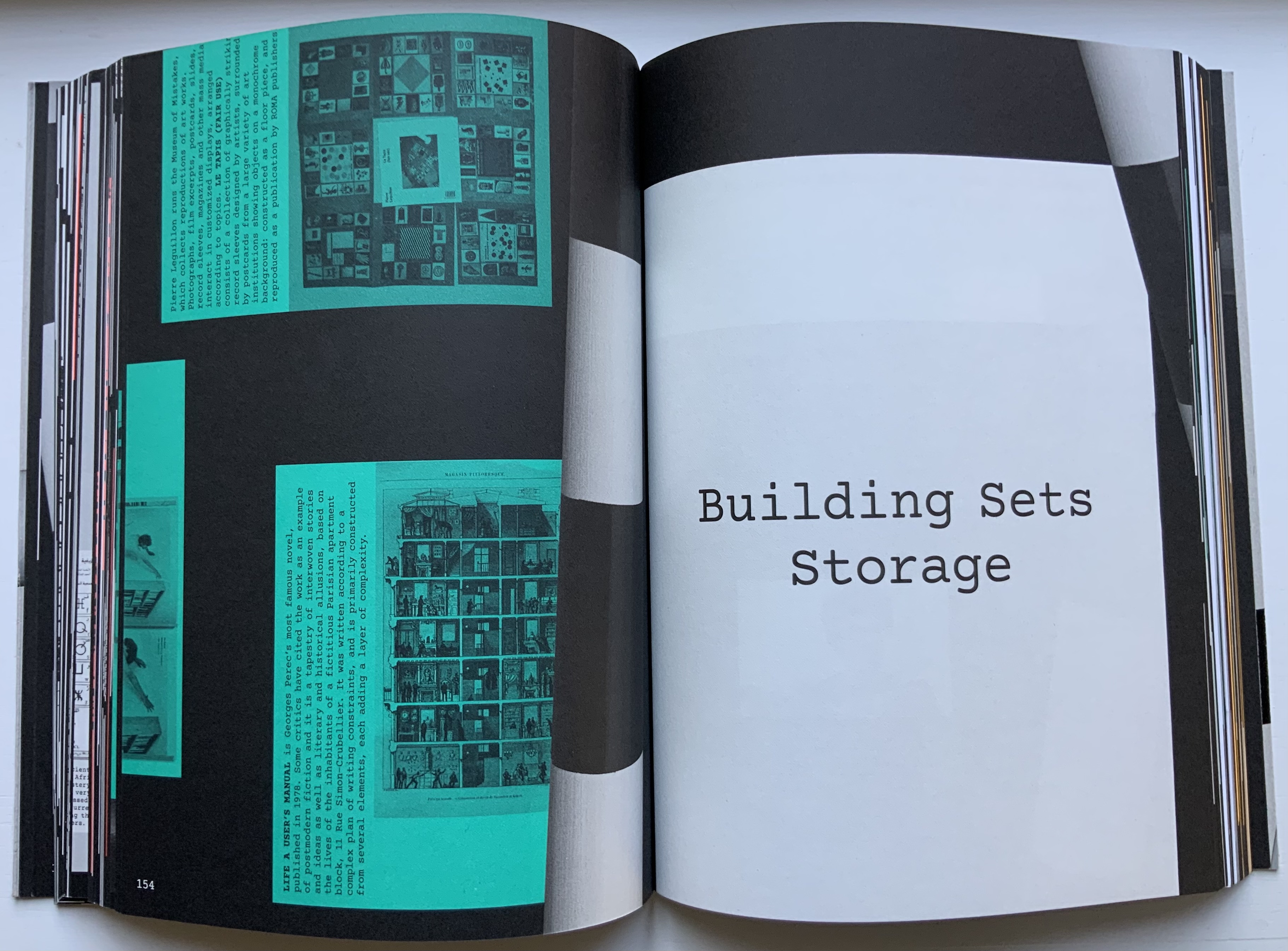 Interspersed glossy sections showcase projects illustrating or responding to the text or the department. For example, Slovenian graphic designer Nejc Prah delivers variations on Masonic tools for Symbols; Paris-based Fanette Mellier, on grid-based design for Poetics; and the Amsterdam-based studio Moniker, “board game cut-ups” for Play. While these sections fit their context in the book, their content and “slippery floor” substrate ratchet up the sense of disorientation. Museum visitors easily tire, and they can be bored in some departments.