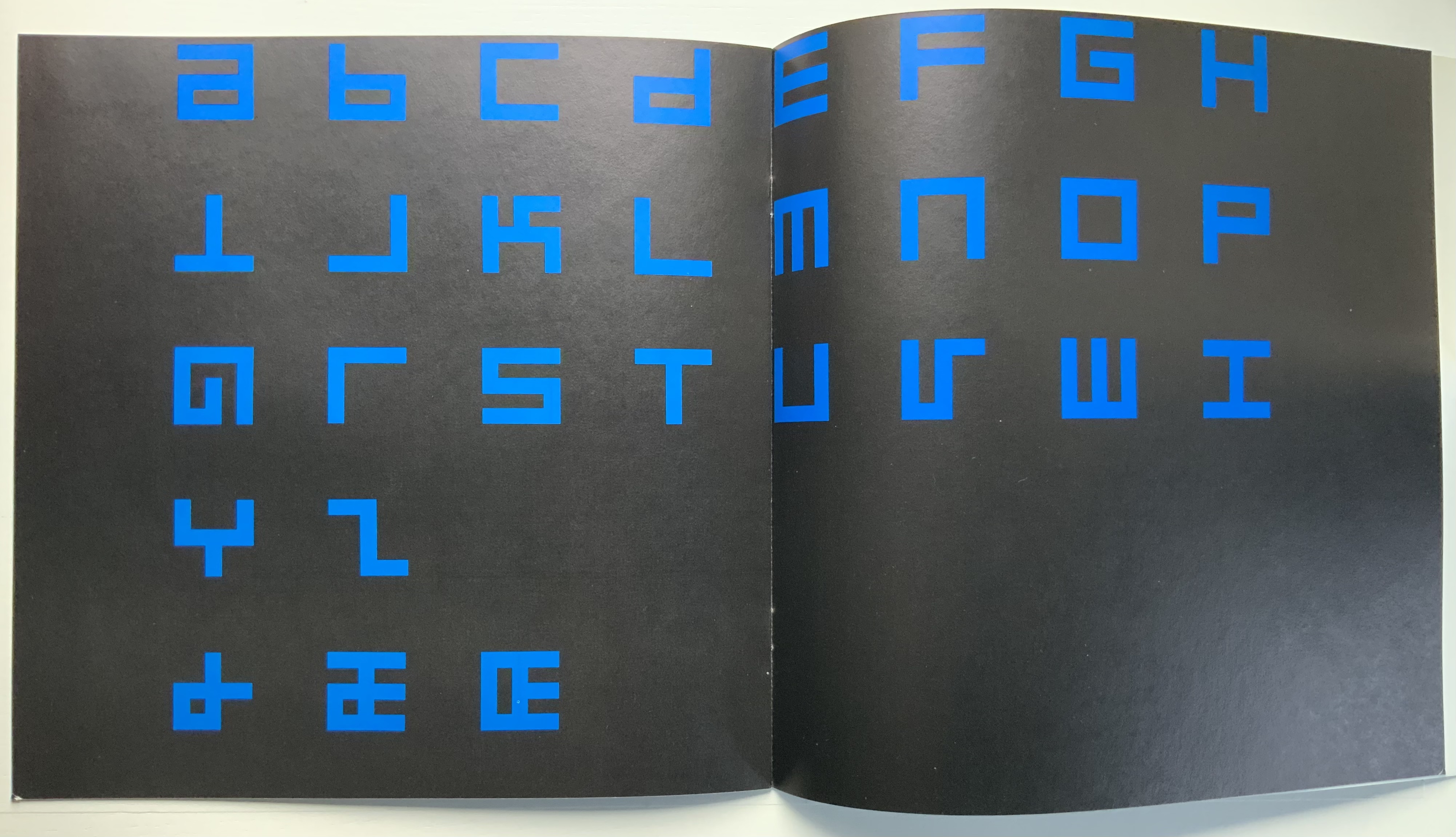 This is the alphabet that inspired Raffaella della Olga’s LINE UP (2020), also in this collection. At the UK’s National Physical Laboratory, Epps and Evans created their alphabet in 1969 in response to the challenge to overcome machine-readable typefaces’ human-unreadability. Perhaps because it was the second of three responses to Wim Crouwel‘s New Alphabet (1967), published in the Kwadraatblad/Quadrat-prints series, the Dutch graphic designer and series editor, Pieter Brattinga, snatched it up for publication in his series of experiments in printing ranging over the fields of graphic design, the plastic arts, literature, architecture and music. This particular issue was designed by John Stegmeijer at Total Design.
