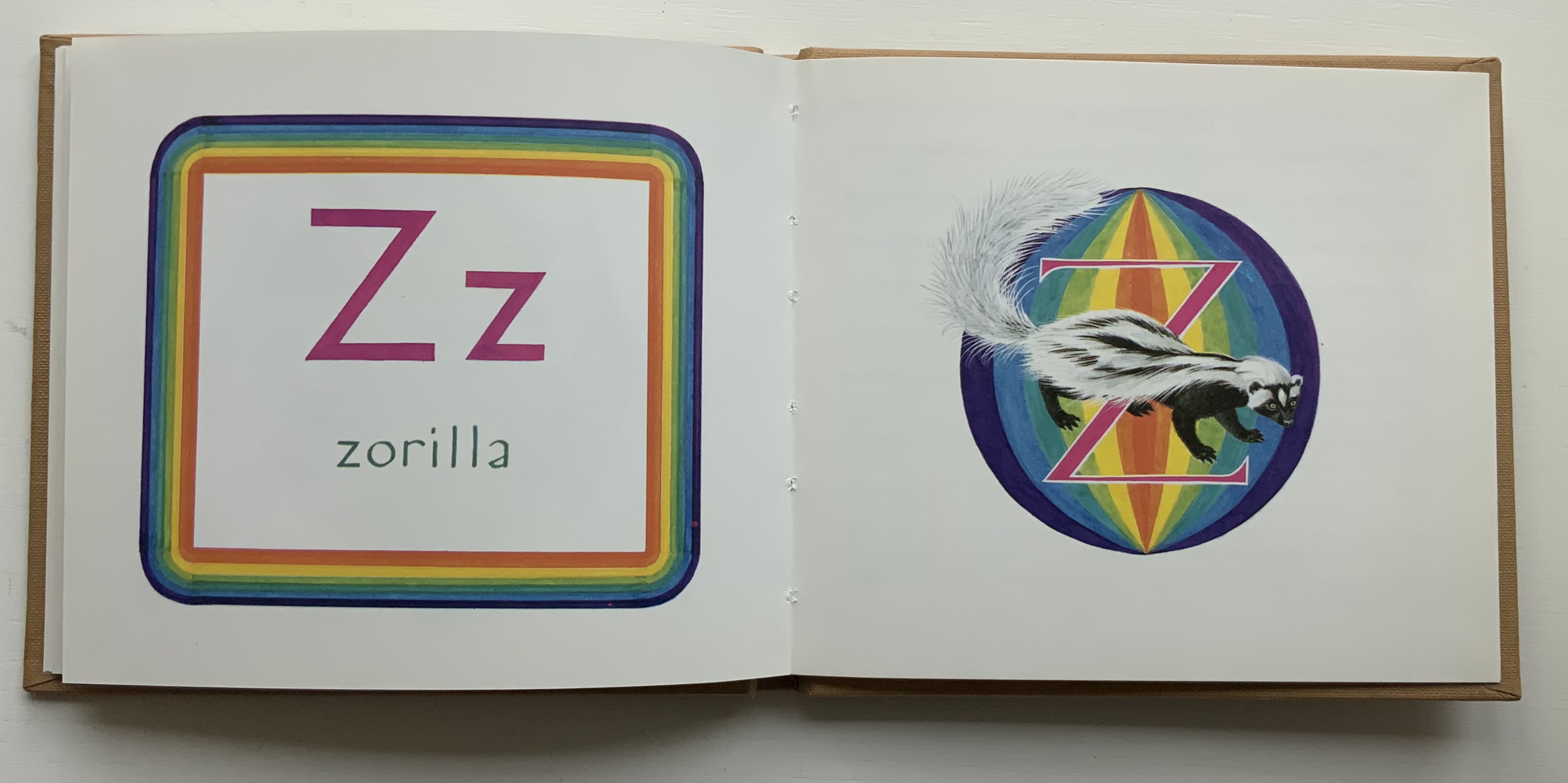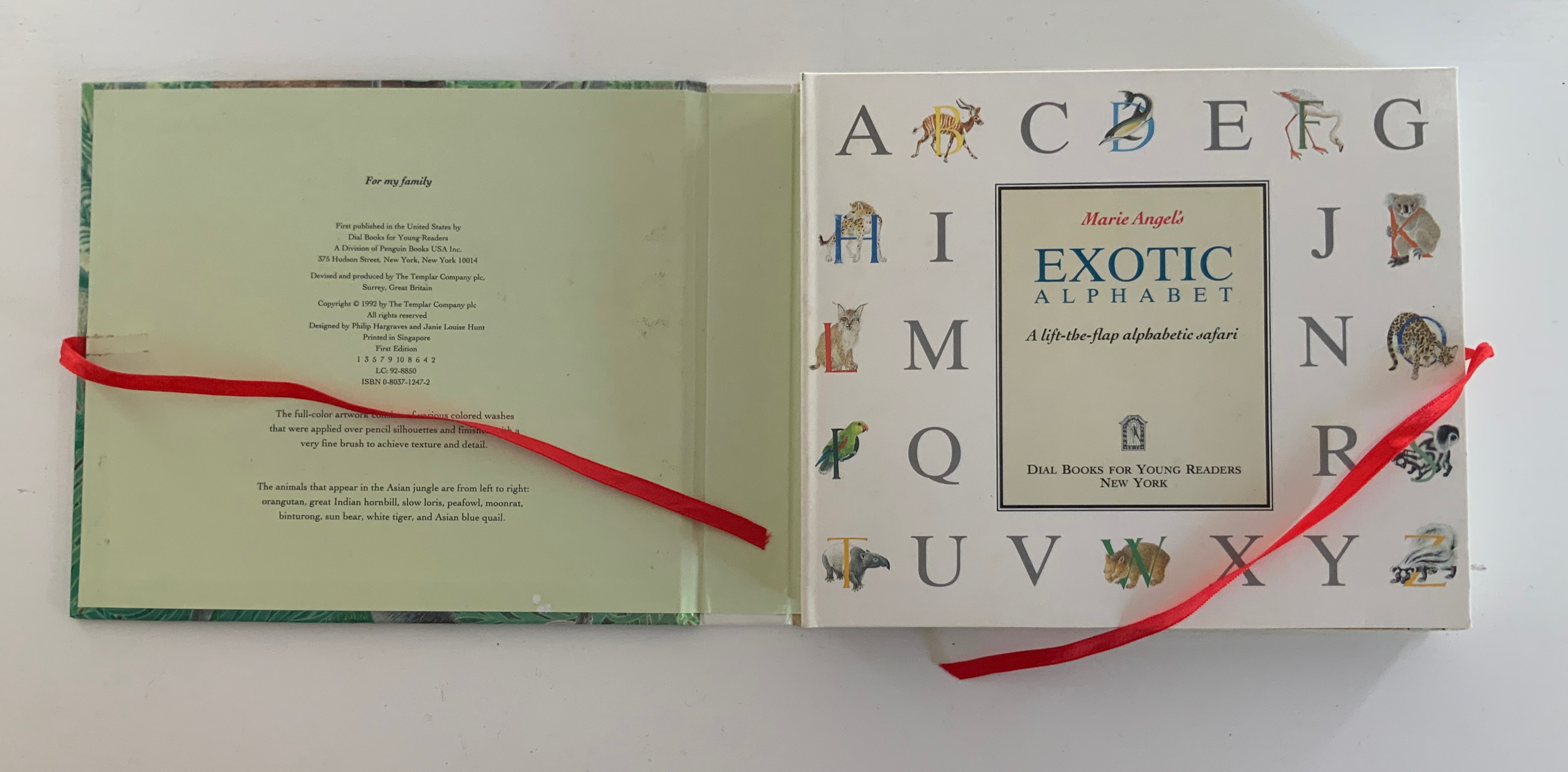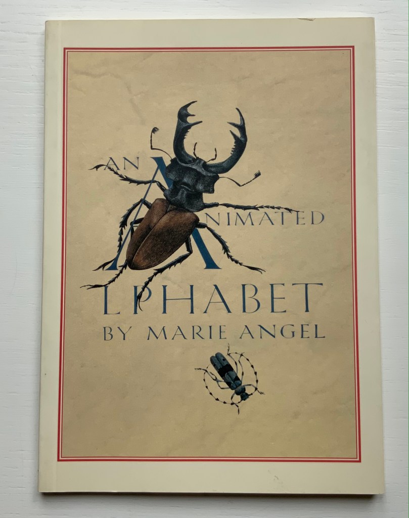In the 1960s, Philip Hofer of Harvard’s Houghton Library commissioned the British illustrator to create a series of bestiaries. A black and white edition of An Animated Alphabet appeared in 1967. The publisher David Godine issued this full color edition in 1996. Before the Godine edition, other abecedaries appeared, including Marie Angel’s Exotic Alphabet (a lift-the-flap double-sided accordion book) in 1992, the colorful Angel’s Alphabet in 1986 and An Alphabet of Flowers in 1987.