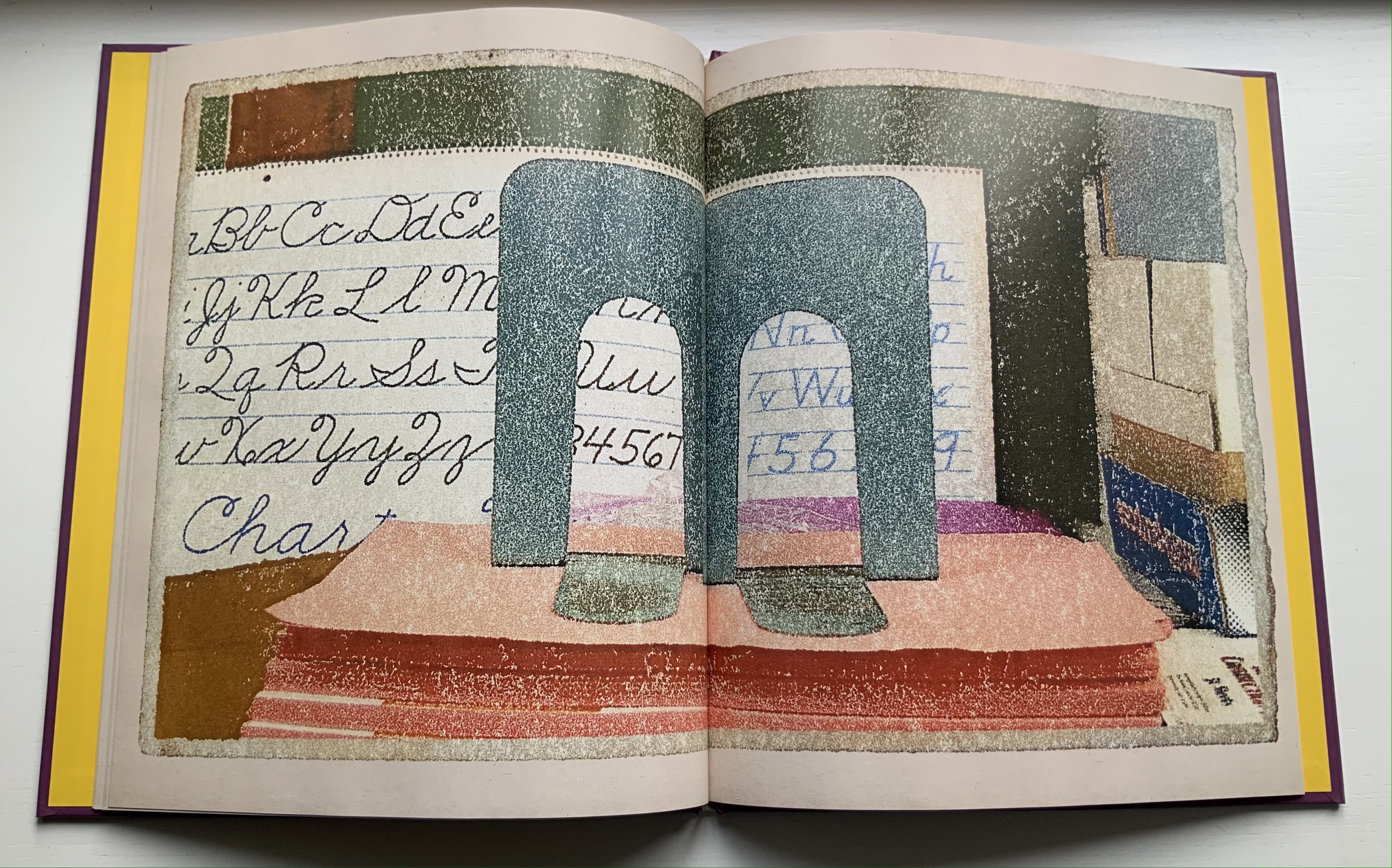 A Caldecott Honor Book and New York Times Best Illustrated Book in 1995, Alphabet City goes beyond the alphabet letters as found objects, a sub-genre documented by Steven Heller and Gail Anderson in The Typographic Universe (2014). Johnson transforms his found capital letters with pastels, watercolor, gouache and charcoal into photo-realistic pictures in varying but similar sizes; for example, 26.5 x 22.5 inches for the A and 25.25 x 21.5 inches for the Z. These appeared in an inaugural exhibition in 1997 at the Katonah Museum of Art in New York. Johnson’s works are held in numerous permanent collections (mostly in the US) and private ones (mainly US-based but increasingly Europe as well), but they are closely tied to his children’s books: Alphabet School (2015) and A is for Art (see below). Most impressive is how he lifts the alphabet book from ordinary trade status to artist book.