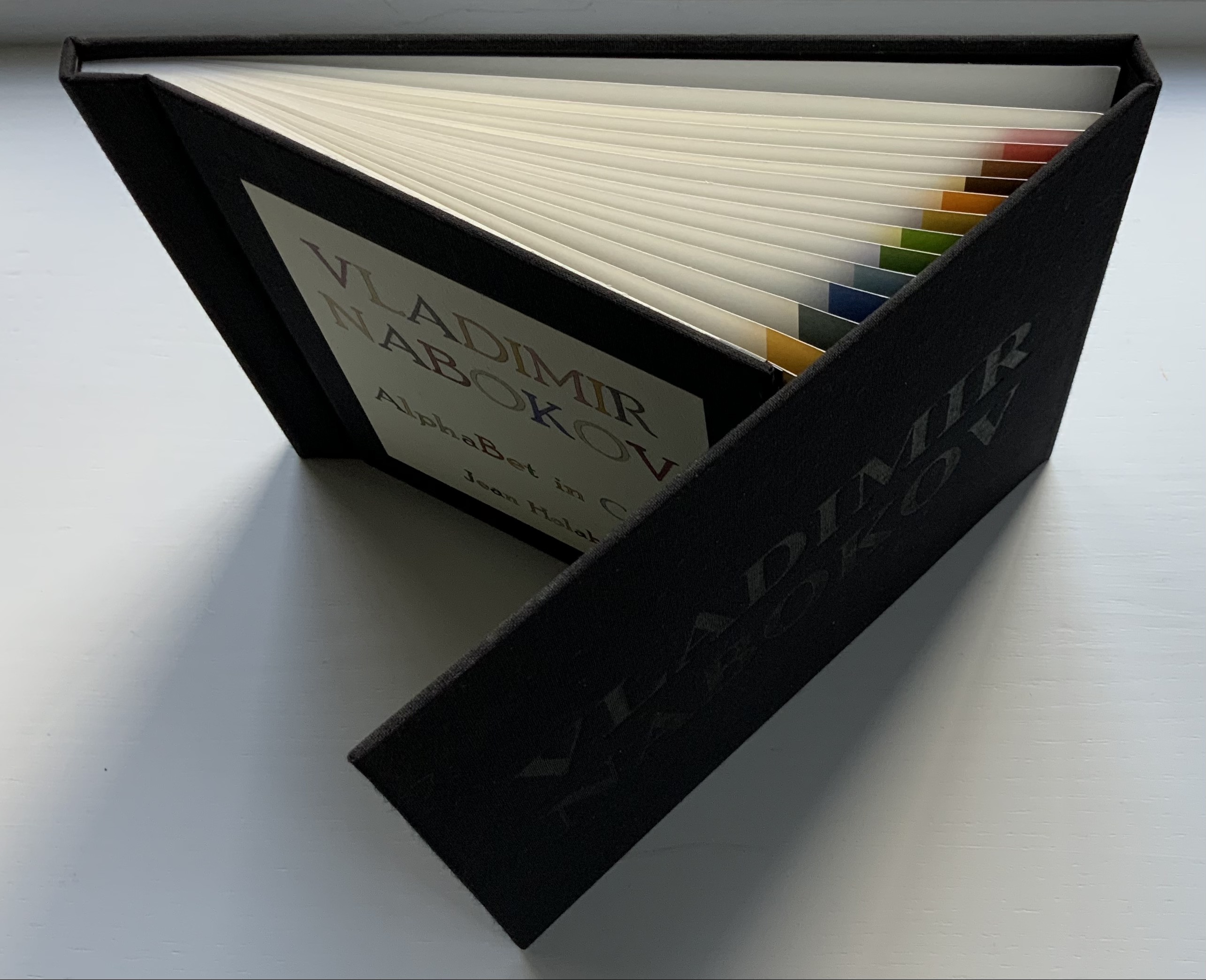 Vladimir Nabokov saw rich colors in letters and sounds and noted the deficiency of color in literature, praising Gogol as the first Russian writer to truly appreciate yellow and violet. He saw q as browner than k, and s as not the light blue of c, but a curious mixture of azure and mother-of-pearl. For anyone who has ever wondered how the colors Nabokov heard might manifest themselves visually, Alphabet in Color is a remarkable journey of discovery. Jean Holabird’s interpretation of the colored alphabets of one of the twentieth century’s literary greats is a revelation. The book masterfully brings to life the charming and vibrant synesthetic colored letters that until now existed only in Nabokov’s mind. In Alphabet in Color Jean Holabird’s grasp of form and space blends perfectly with Nabokov’s idea that a subtle interaction exists between sound and shape.