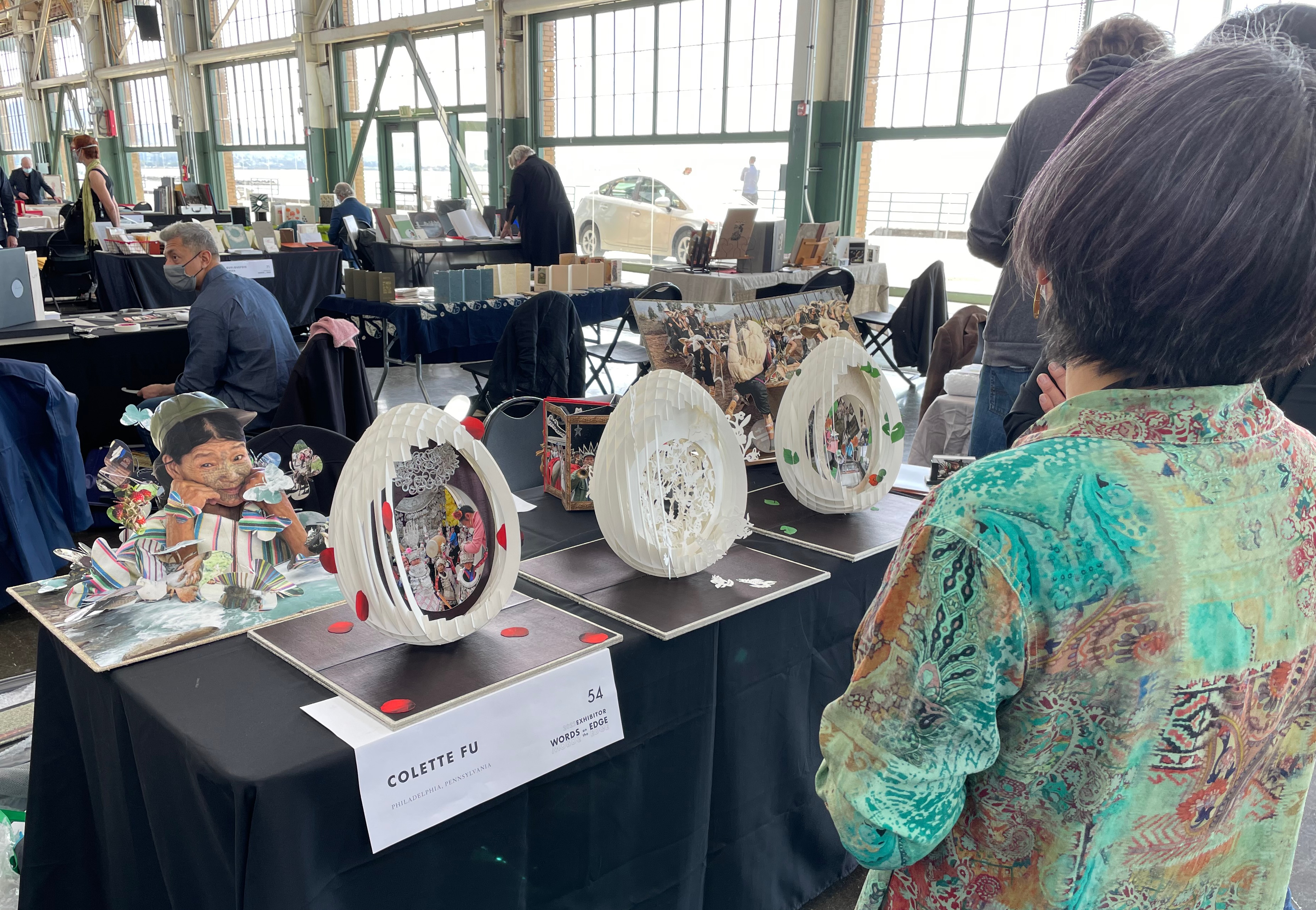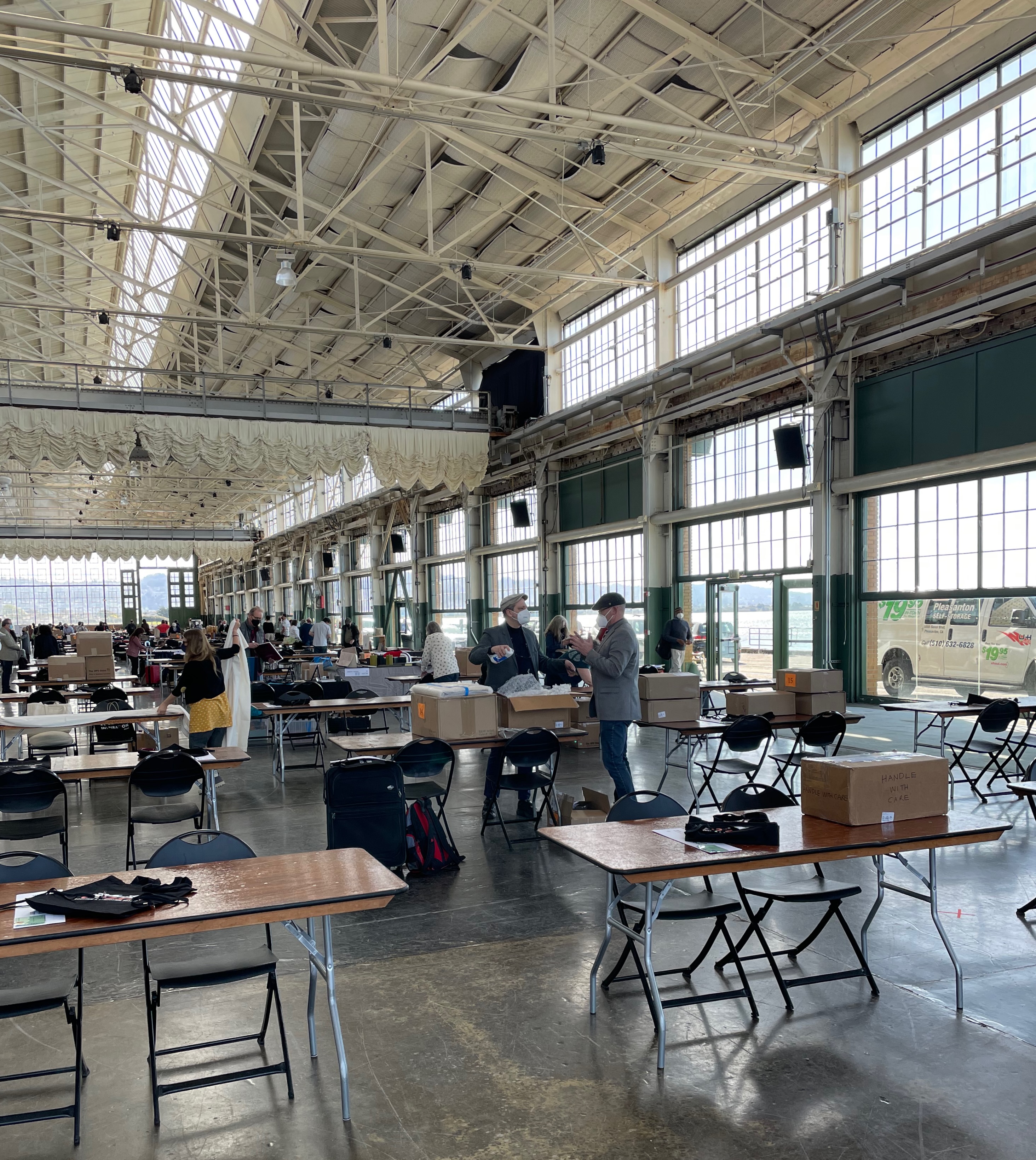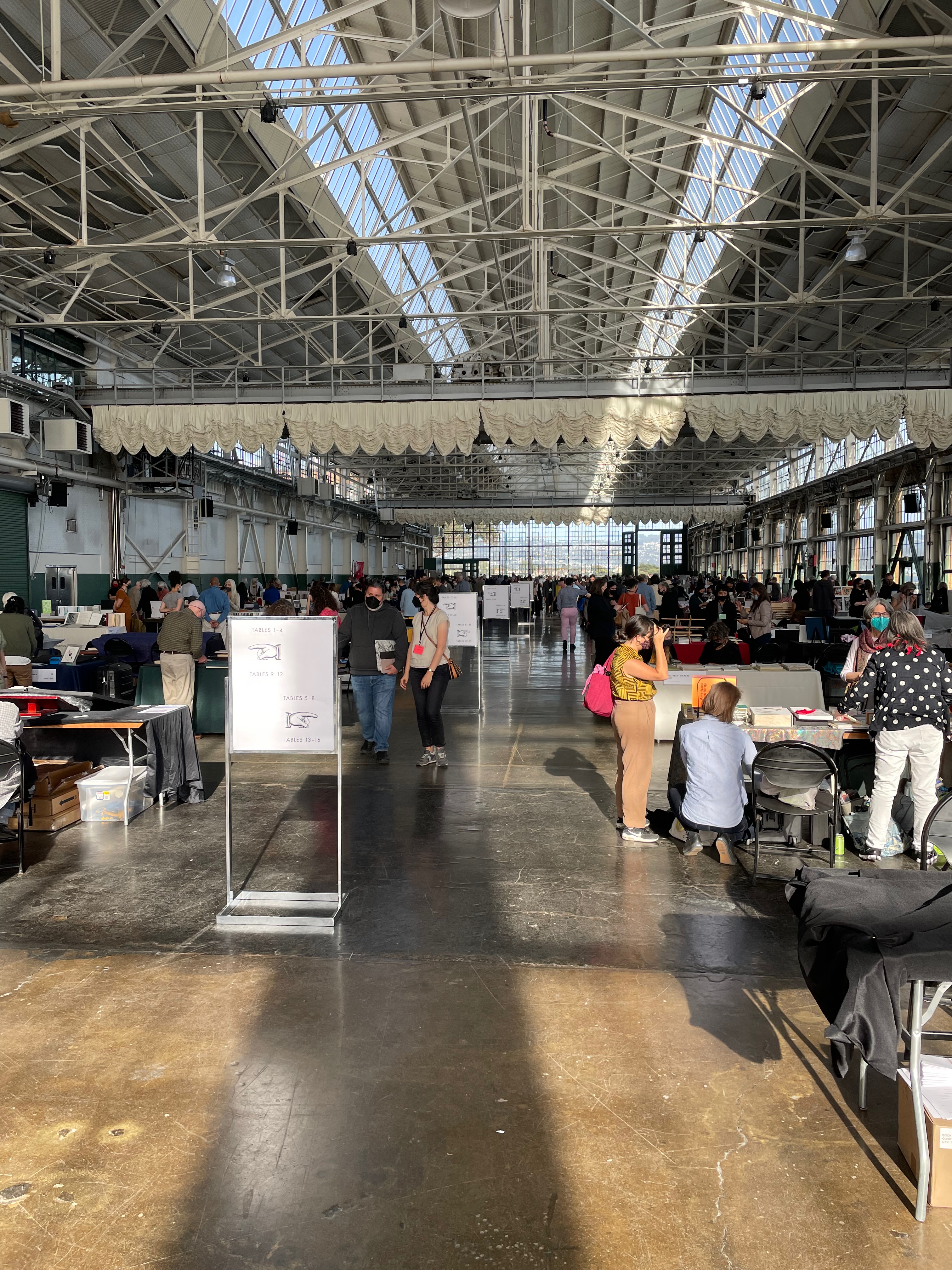After the long pandemic-driven gap, the pent-up creatures had escaped their studios. The buzz in the cavernous Craneway Pavilion was muted by the carefully observed mask-wearing requirement, but the works shouted in the harbor’s April air blowing in.