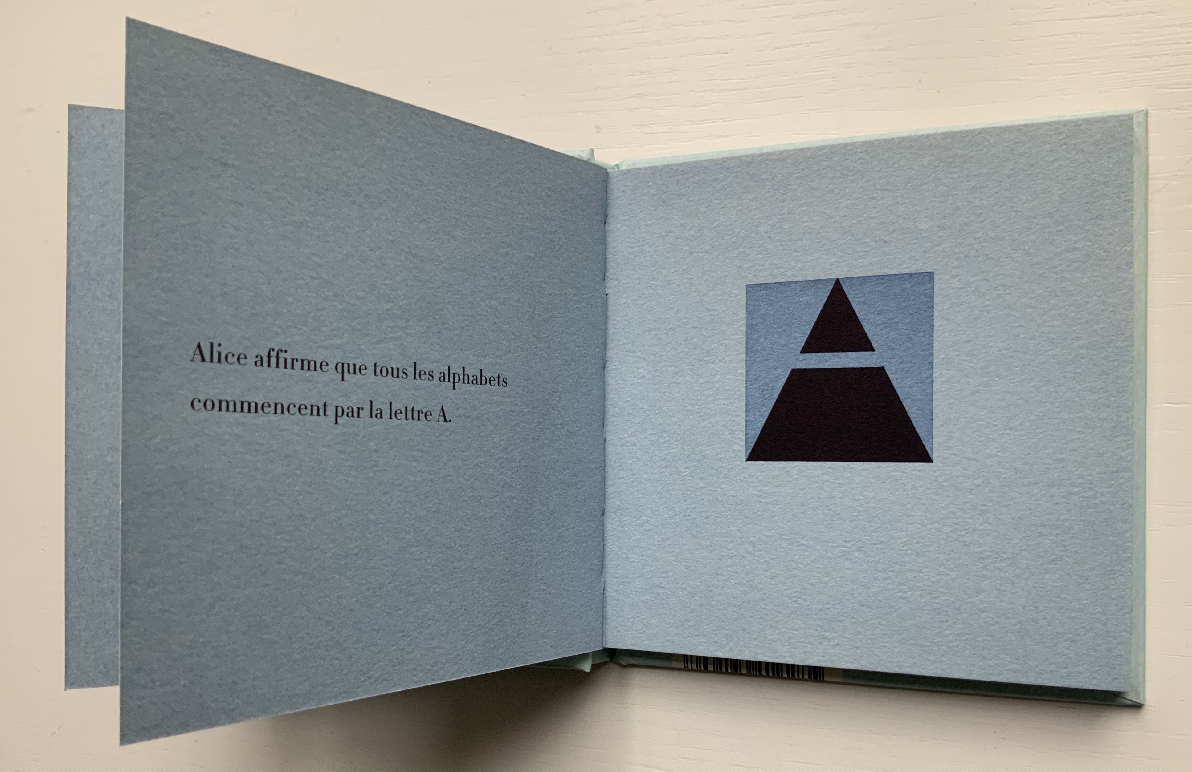 Here is the French version of the alliterative alphabet. Its opening with Alice suggests an underlying literary motif, but more likely at play is the association of the book’s title (“dream me a letter”) with Alice’s dreaming of Wonderland.