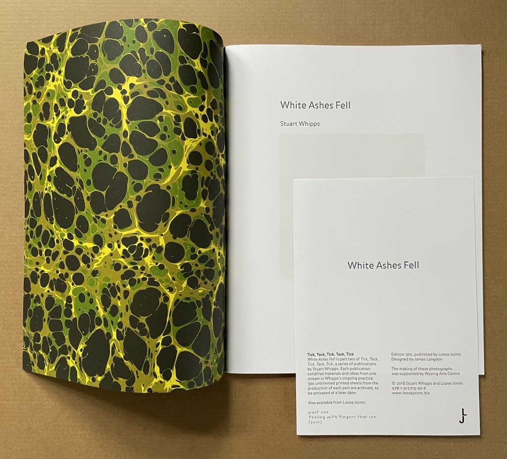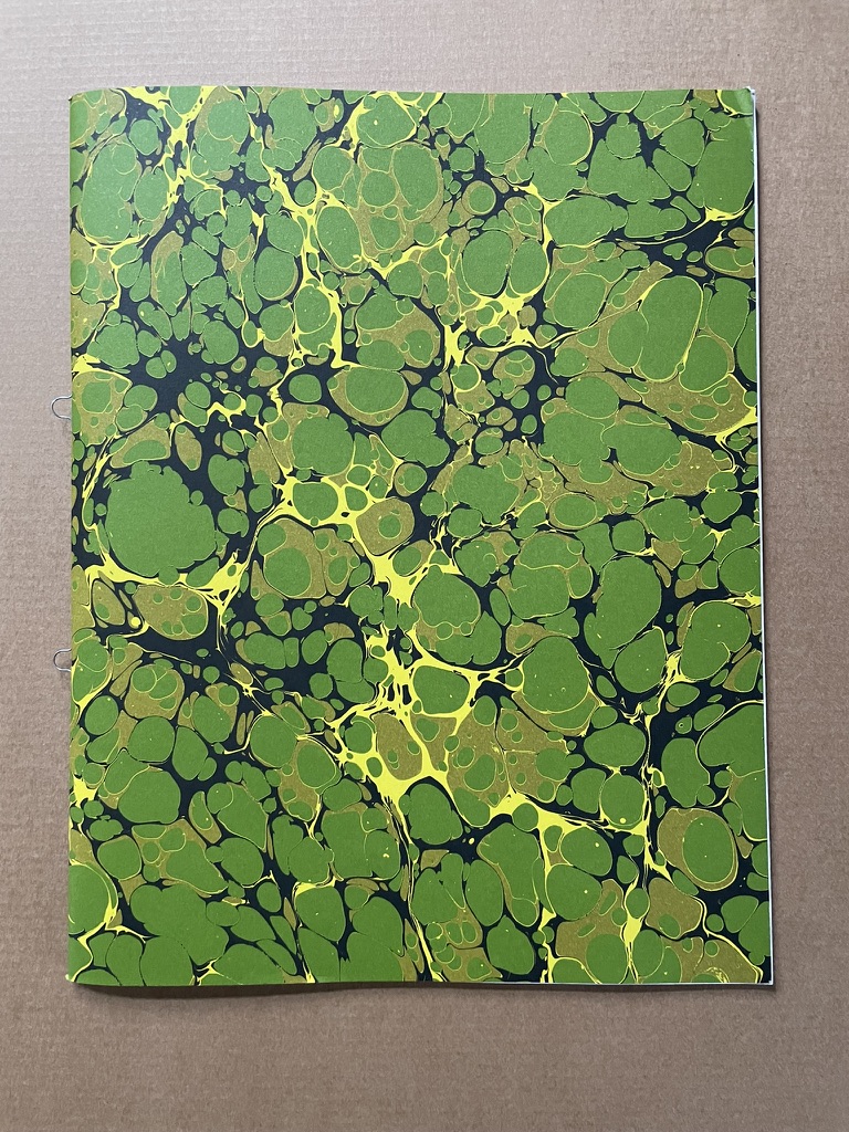 Saddle stitched booklet with loop staples and marbled cover. H270 x W210 mm (W216 mm including loop staple). [44] pages. Edition of 300. Acquired from Loose Joints Publishing, 27 December 2022.