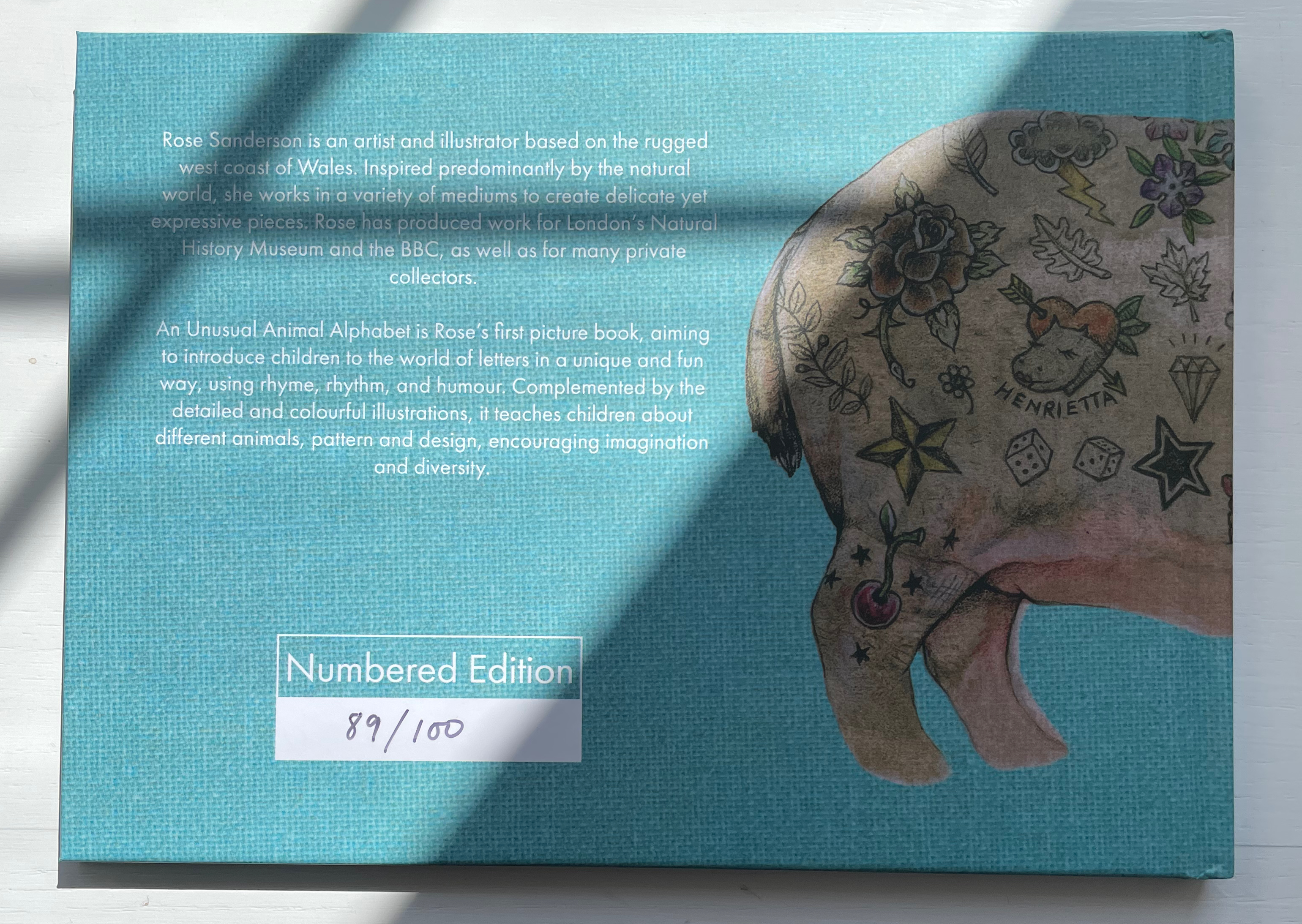Written and illustrated by Rose Sanderson, this abecedary introduces children to the alphabet with humorous clashes of colors and animals (a pink bear or blue and white impala?) as well as odd combinations of concepts (topiaries and mammals, skyscapes and kangaroos). It all tips over into the surreal, which, with the vocabulary (spirograph, topiary, uakari), implies an audience of older children and adults.