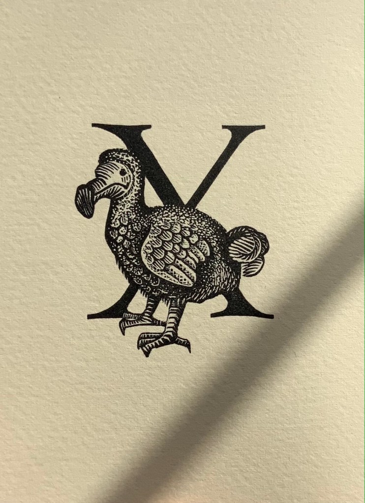 E.N. Ellis, An Alphabet (1985).* The letters Q and X always present challenges in finding suitably named animals. Ellis’s solution with X is as elegant as her engraving.