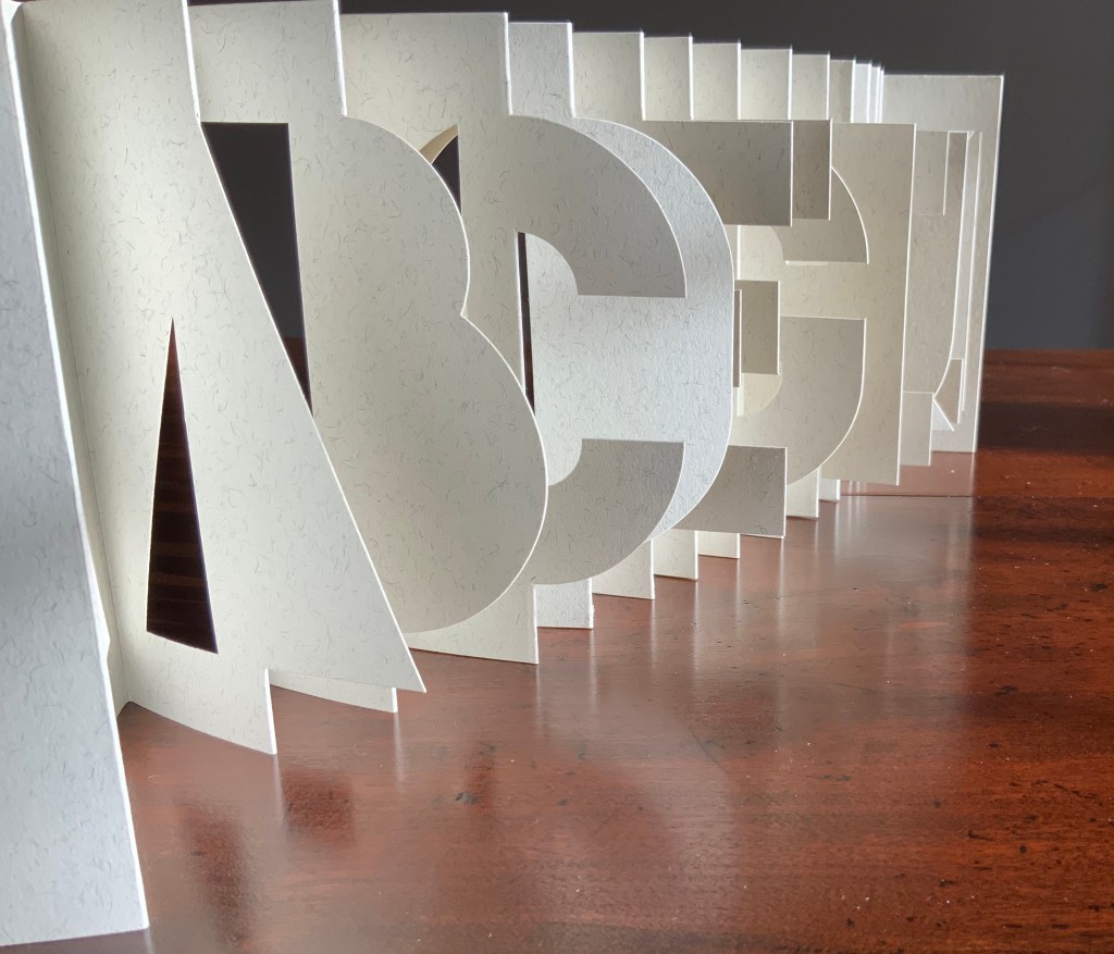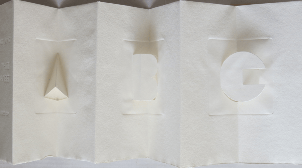 Ron King, The White Alphabet (1984). This double-sided leporello’s larger scale offers another opportunity to explore how light, paper, folds and cuts interact to provide the simple clues we need to distinguish a letter — and, by comparing it with the smaller versions, the chance to see how King has changed those sculptures over the years.