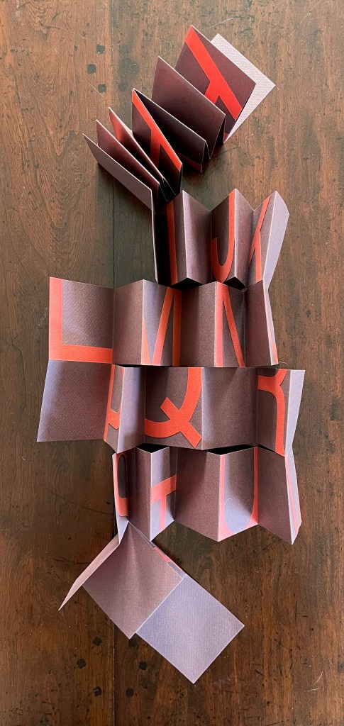 Maria Pisano, XYZ (2002). Two important features distinguishing this leporello from others are its miniature status and its being made with pulp paint.