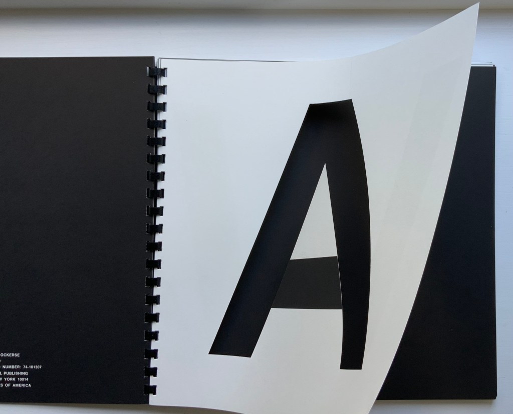 Thomas Ockerse, The A-Z Book (1969/2014). In progress Ockerse’s spiral-bound harlequinade does not proceed from A to Z. Instead, a turn of the page demonstrates how an A can become a V, which then becomes an M, which then becomes an E. It has more in common with Munari’s ABC con fantasia than McCarney’s alphabetically sequenced Alphabook 10.