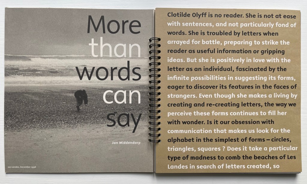 In addition to being remembered for his own typographic design and publications, Middendorp is owed a debt of gratitude for collaborating with Clotilde Olyff to document her work.