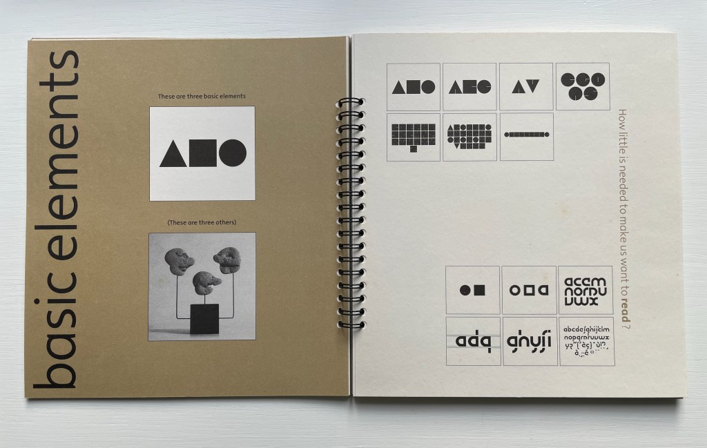 Perhaps mostly noted for her pebble alphabet, Olyff should be noted for her Munari-like focus on the relation of the basic forms of circle, triangle and square to the shapes of letters and numbers and her ability to express that in sculpture, book art and games as well as type. Her works, as Middendorp writes in the preface, “are the result of investigations into the essence of the letter, into the mechanisms and conventions that guide our perception”.