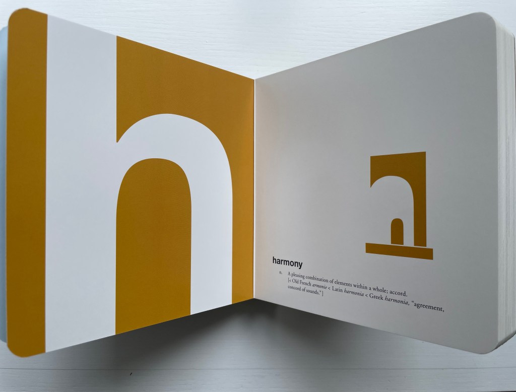 Consider, too, the board book format of ABCing. ABCing underscores the crossover between concept and craft when the imagination draws on the “artistic toolkit of the book”. It might send the reader off to alphabet board books like Harold’s ABC (1963, 2015) by Crockett Johnson in the collection, but here are board books not for the children’s section.