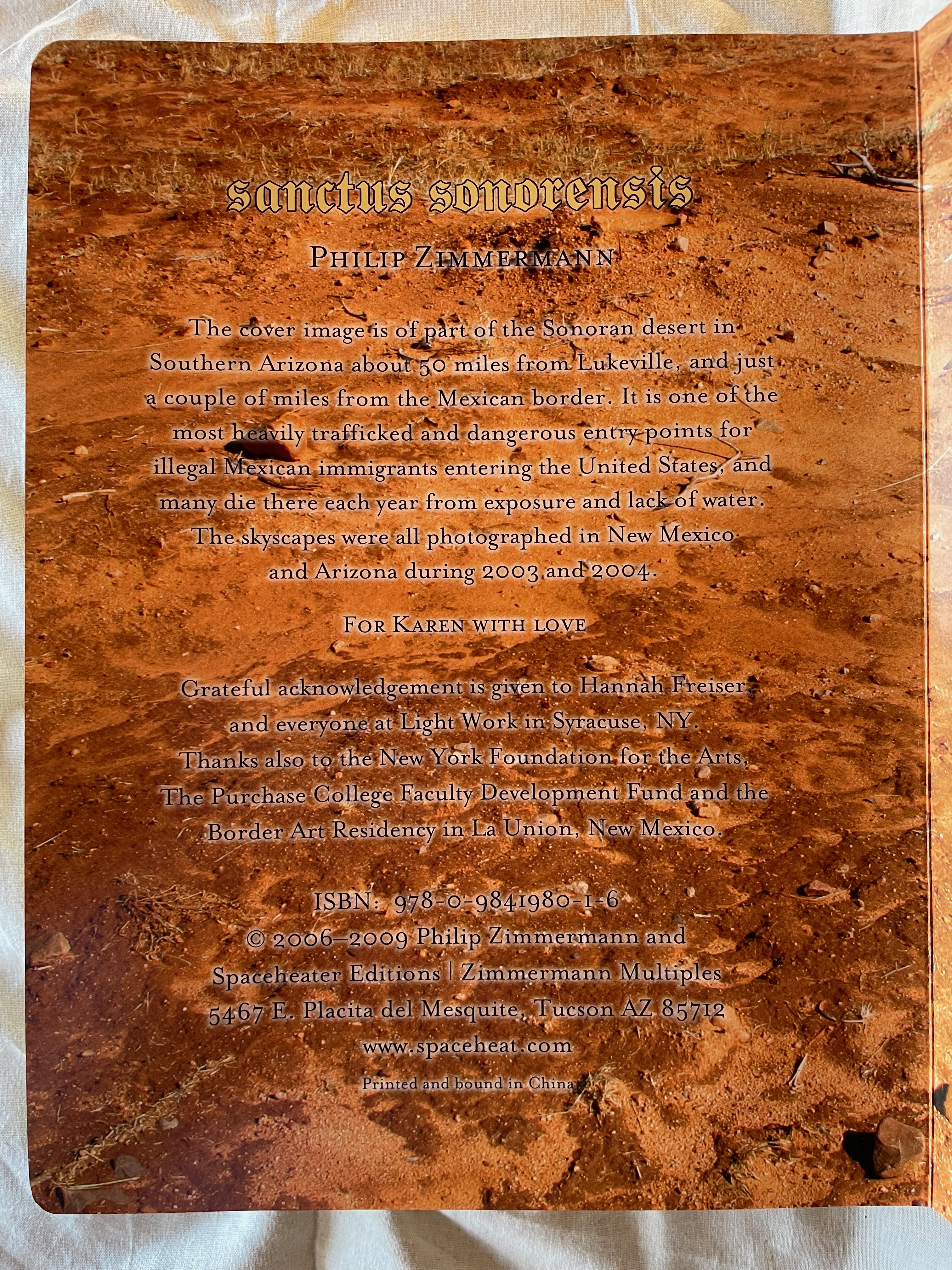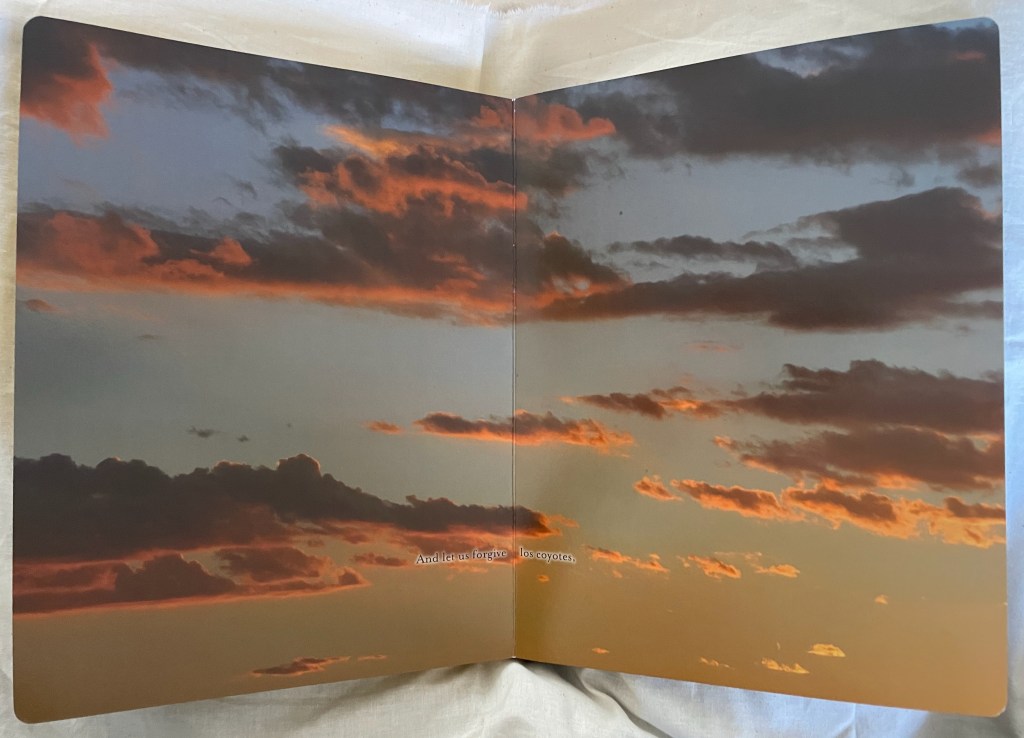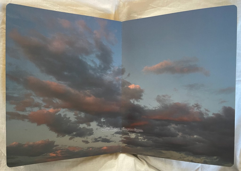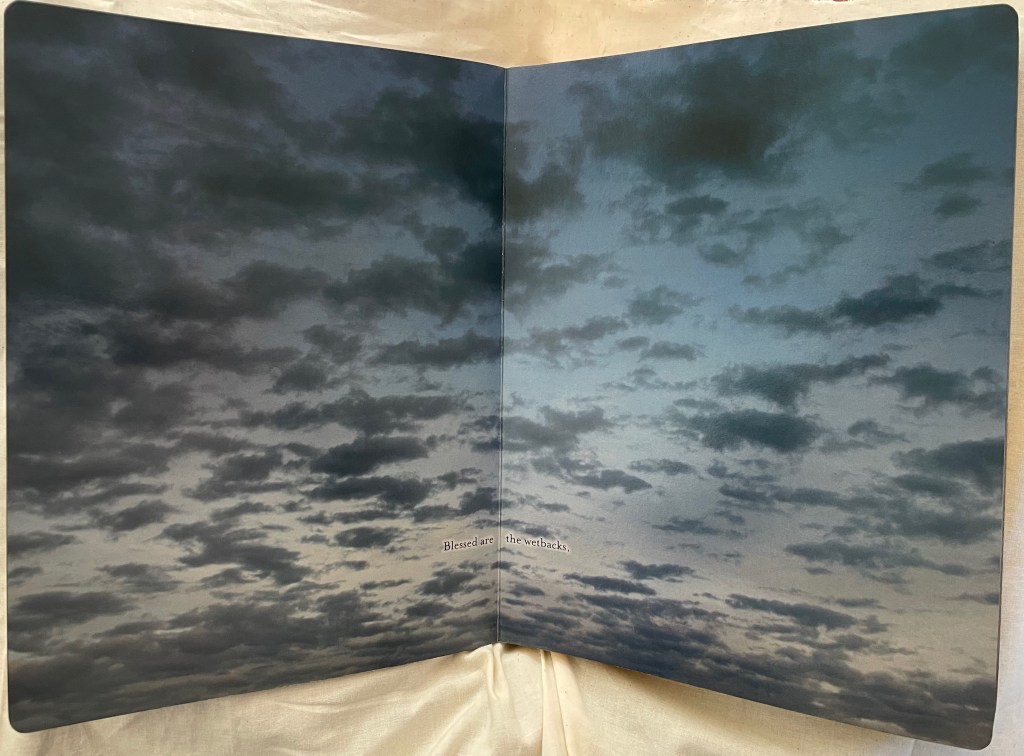 ABCing‘s abecedarian structure and its board book format underscore its intent in a wry manner. Introductory it may be, but its visual metaphors and use of negative space are subtle. Likewise, Chroma Numerica‘s counting book structure and board book format contrast with its Greco-Latinate title, limited print run and celebration of wood type printing, and the beatitudinal structure and religious gilding of the childhood book format of Sanctus Sonorensis heighten the biting condemnation in its message.