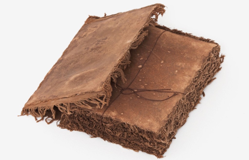 Earth, sand, sea pebbles, linen, muslin-mounted rag paper. Dimensions variable: 35.6 x 20.3 x 8.9 cm.