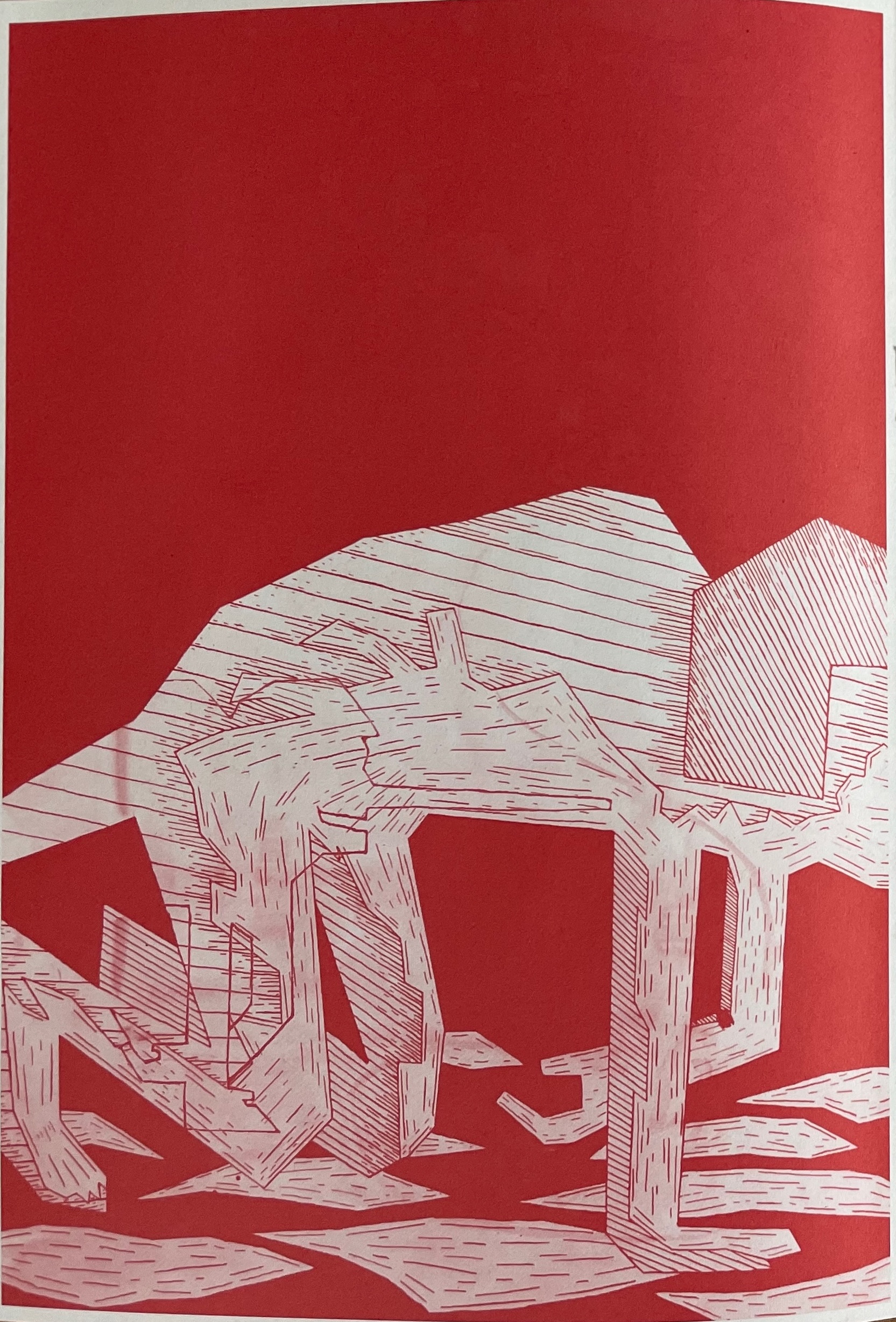 The Red Headed League is as much zine as democratic multiple of an artist’s book. Each artist — Alice Bradshaw / Cathrine Dahl / Eddy Dreadnought / Tim Etchells / Daniel Fogarty / Dag-Arve Forbergskog / Chris Gibson / Lesley Guy / Lisa Murphy / Kim Noble / Jóhanna Ellen Ríkharðsdóttir / Mary Smith / Alice Thickett — has contributed as if to the issue of a zine. A rich variety of styles, techniques and artistic traditions is the result. Day and Guy have assembled the mysteries into a mystery-entitled work held together by the pamphlet’s cover, binding, and red-hued pages as well as their rule of selection for the artists, the source of starting images, and words framing the task. Mysteriously in the end, The Red Headed League operates simultaneously as a loose assemblage of mysteries, each requiring more or less detective work, and a singular mystery requiring its own.