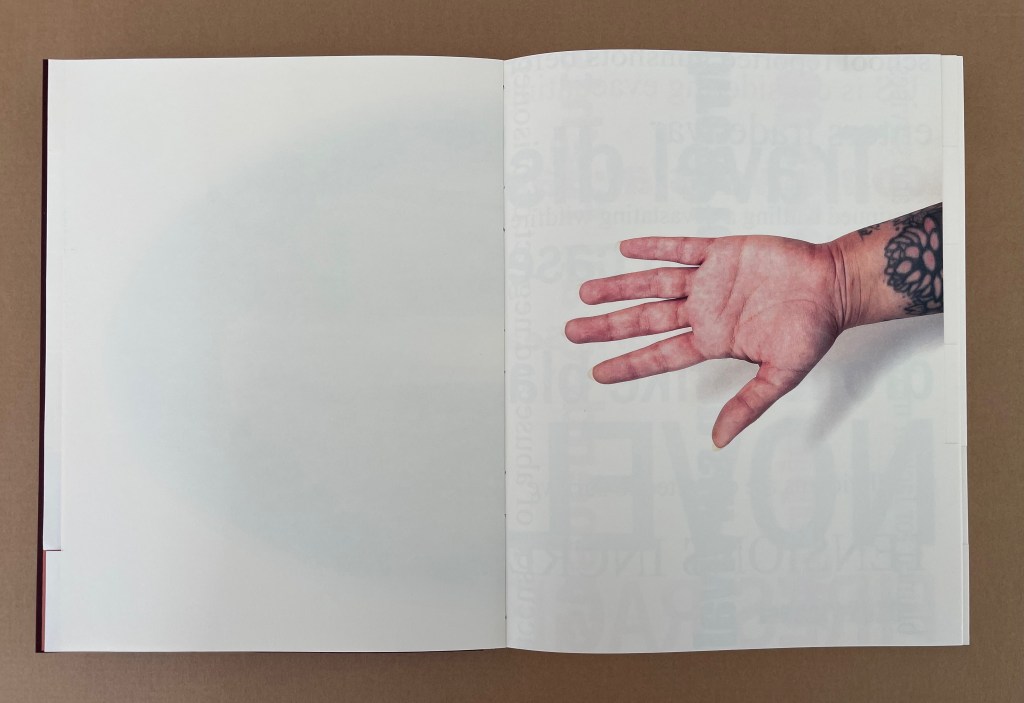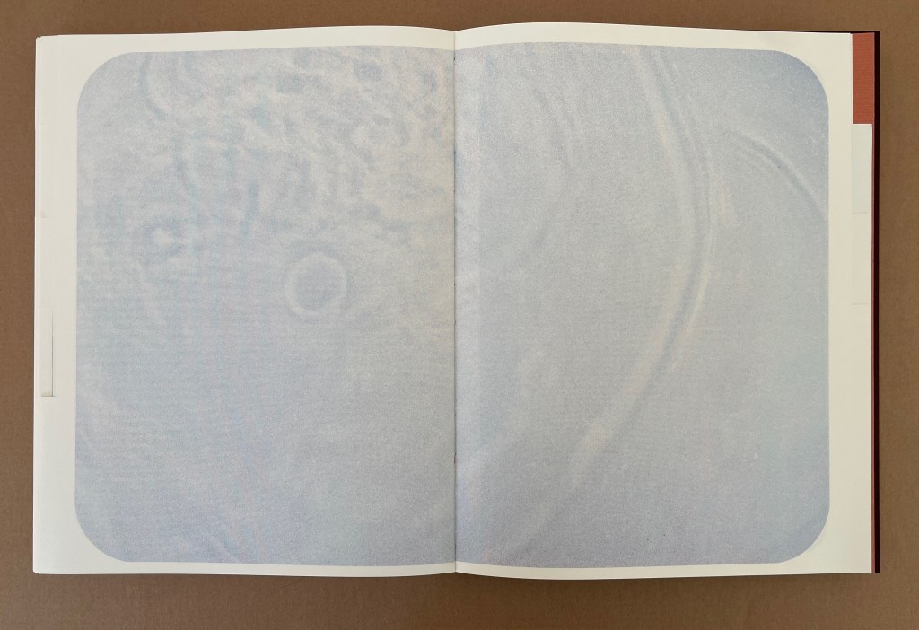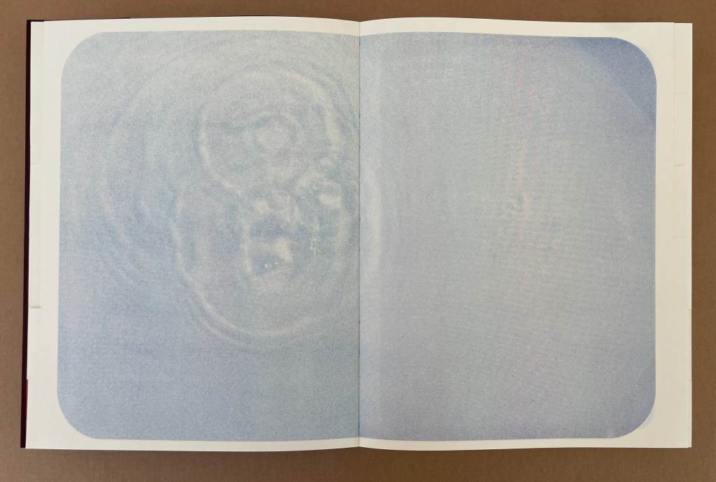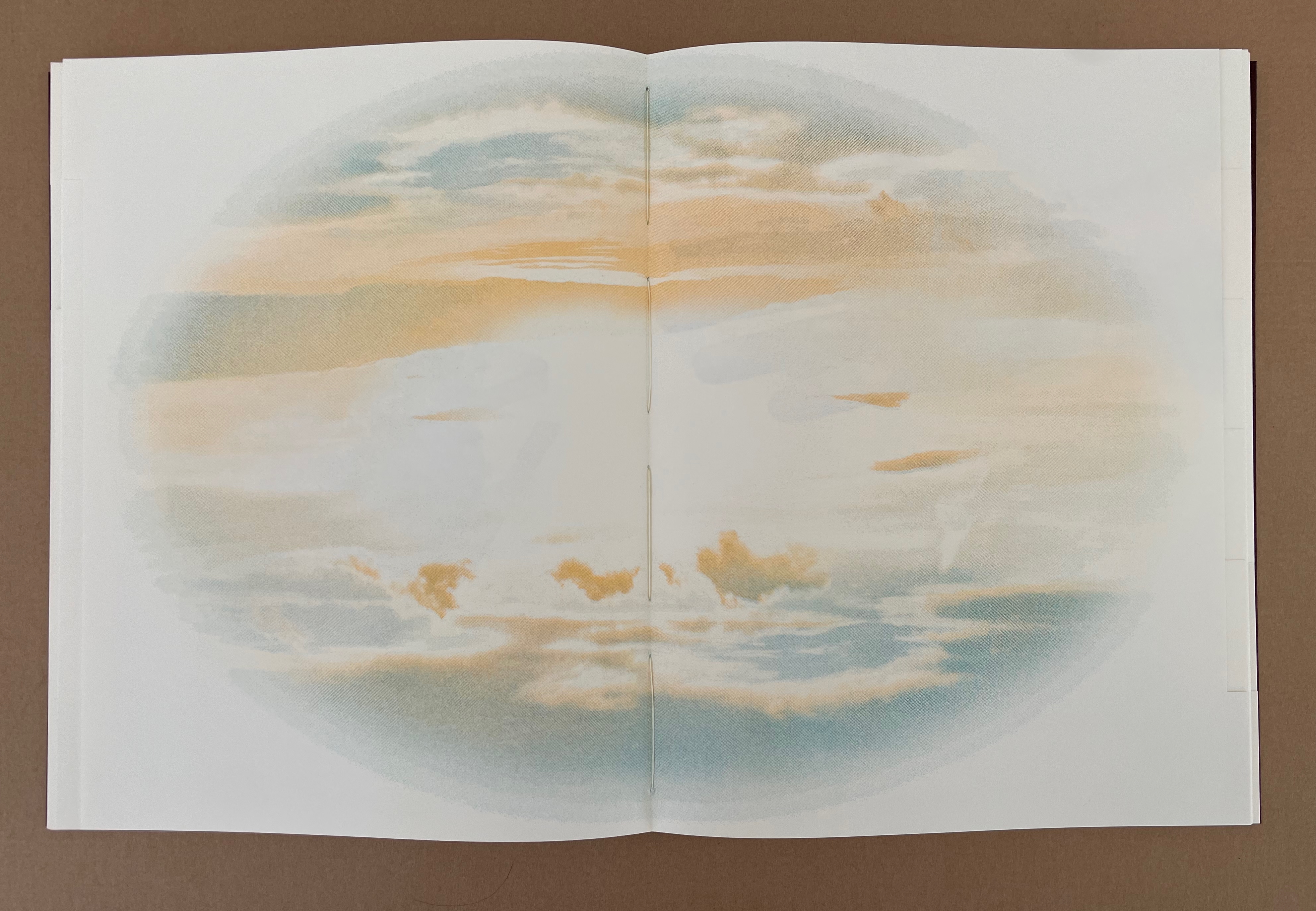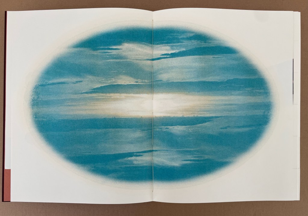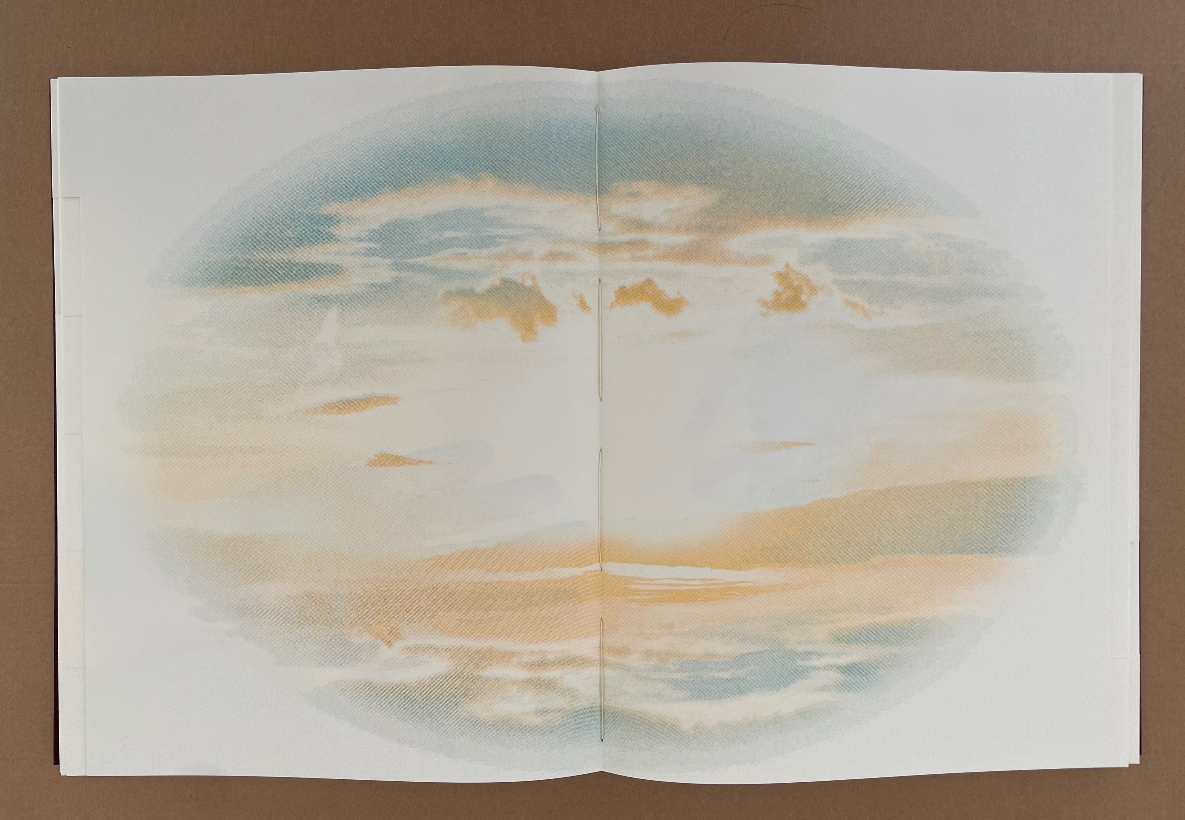 Like each double-page spread in the first sequence, each spread in the sixth and last sequence is the same for both the AM and PM sides. When the book is turned on its horizontal axis, each AM spread becomes the PM spread; and vice versa when the book is flipped again. But there are subtle, major differences between the first and sixth sequences. The first sequence has 12 spreads of text and image. Across the top halves of the first sequence, the text changes as the orientation of the light cones changes until their orientation returns to its starting state. Flip the book, and the same happens, except the light cones turn anti-clockwise.
