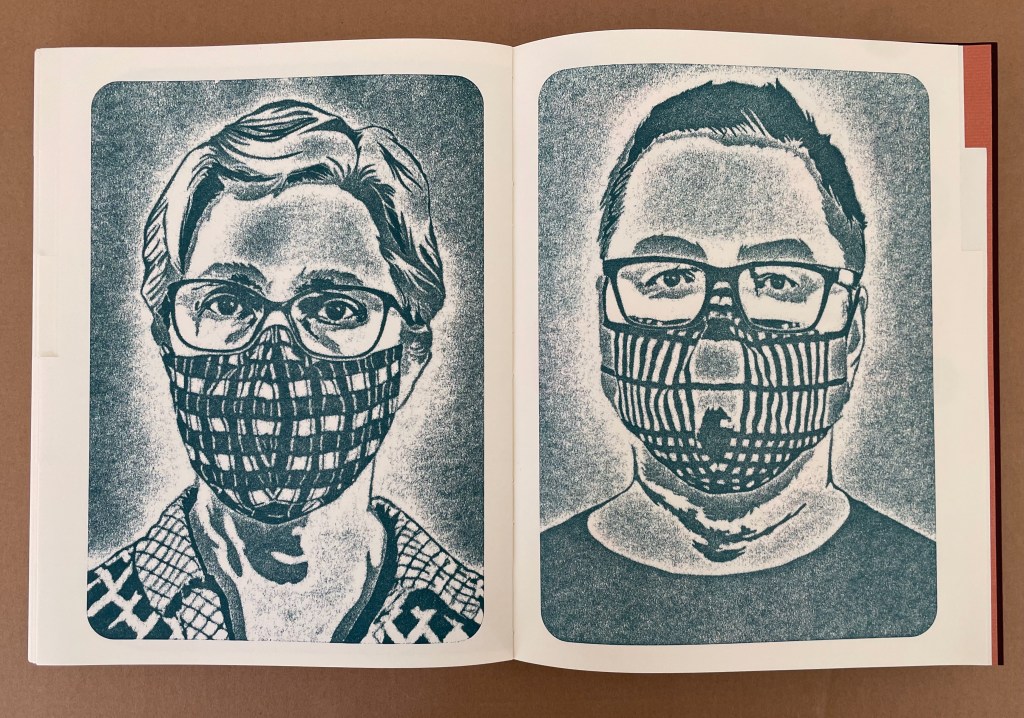 The third sequence on both the AM and PM sides consists of drawn portraits of Chen’s family and friends. The third sequence is again two sets of images — the AM set with faces unmasked, the PM set with faces COVID-masked.