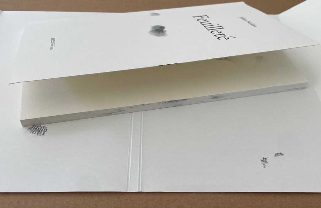 Embossed card cover with deep flaps around perfect binding. H240 x W171 mm. [64] pages. Acquired from Zédélé Éditions, 21 September 2024.