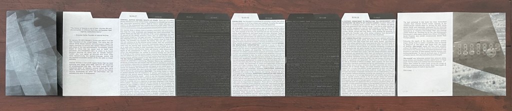 The fold-downs enact the digital shredding of the previous administration’s policies referencing existing laws that the Trump Regime opposed.