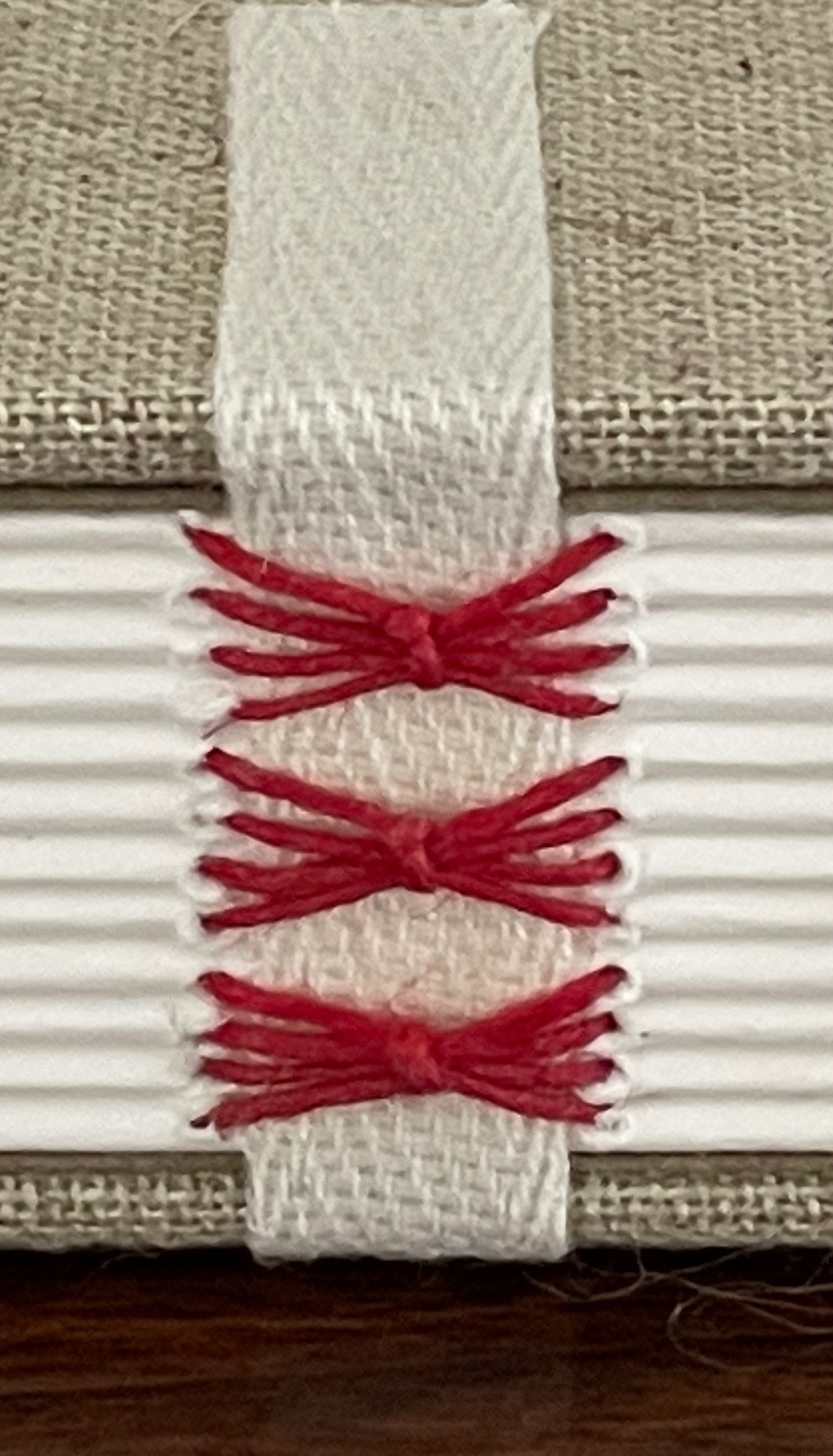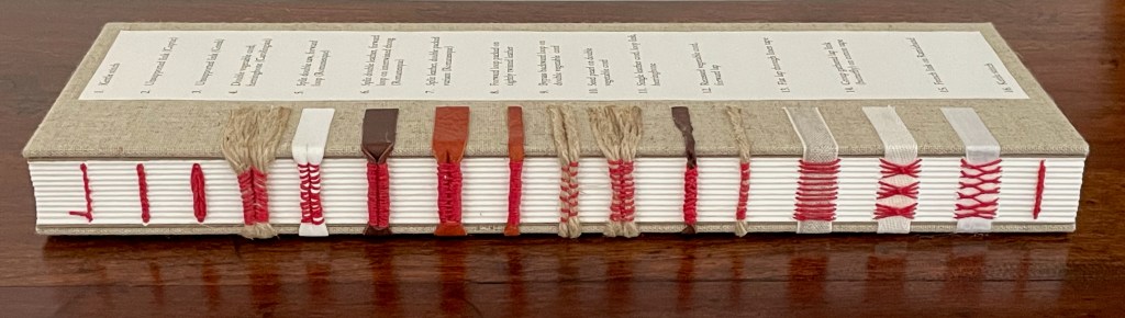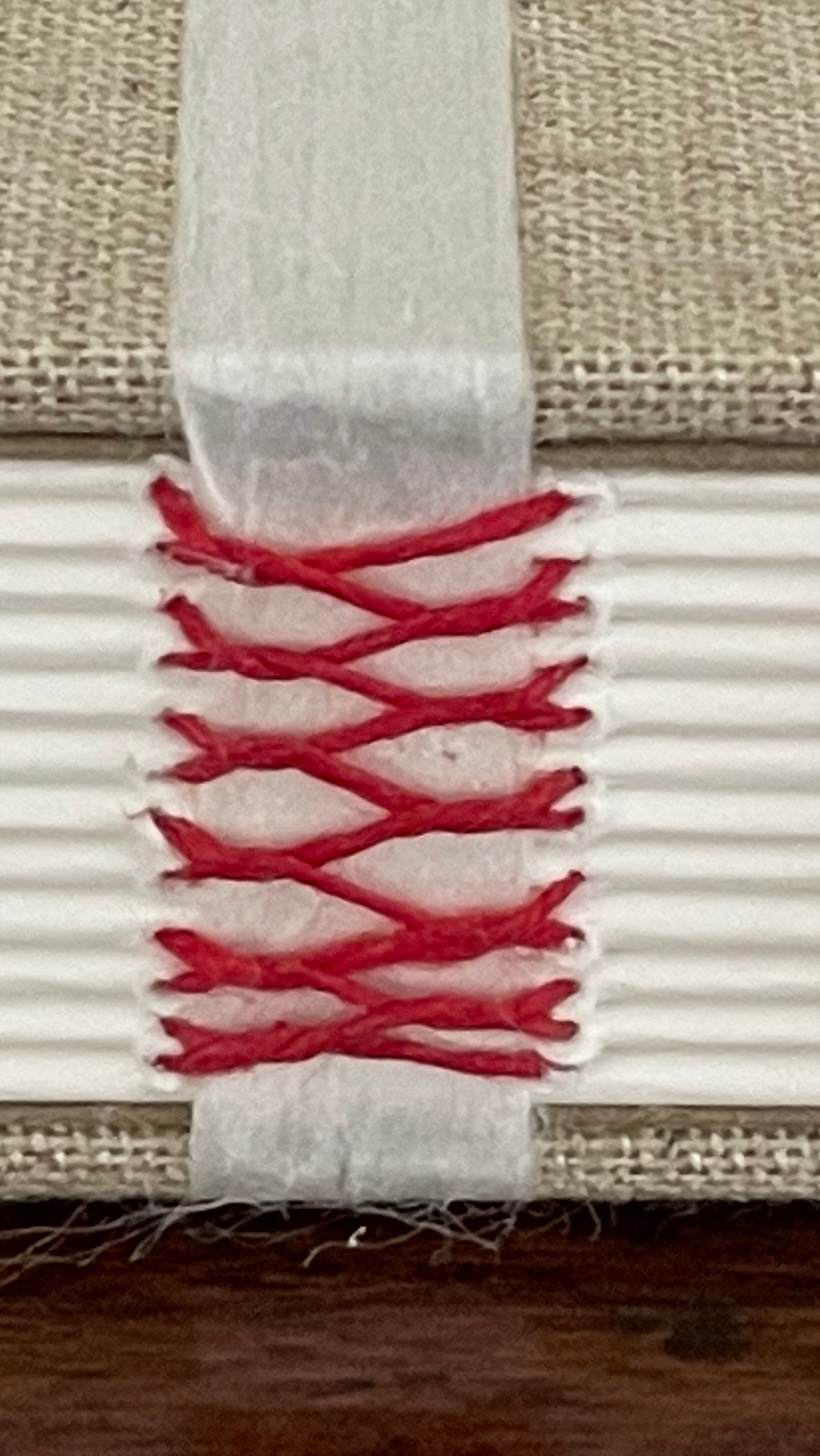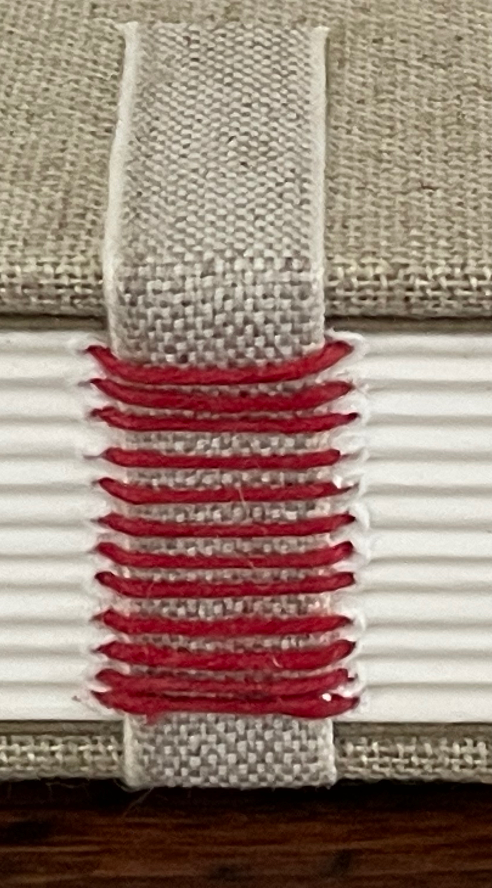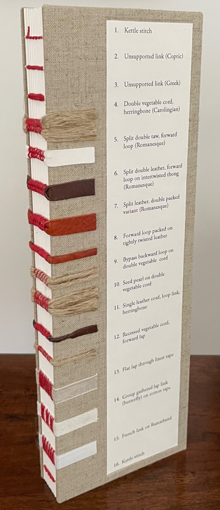 Spine sewing is one of the hidden book arts as it is most often covered by a case binding of paper, cloth, or leather (real or faux). Covell’s Historical Binding: Sewing Sampler: