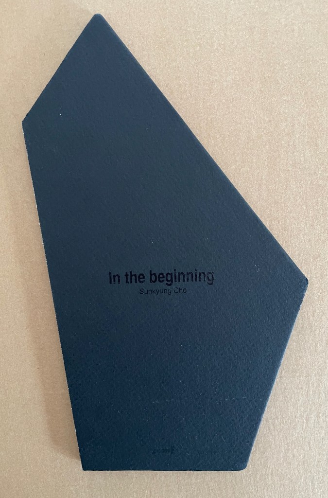 From the artist’s website: 빛 이전의 태초, 사회화되기 이전의 인간에 대해 생각하는 책. [“In the beginning before light, a book that thinks about people before they became socialistic.”]