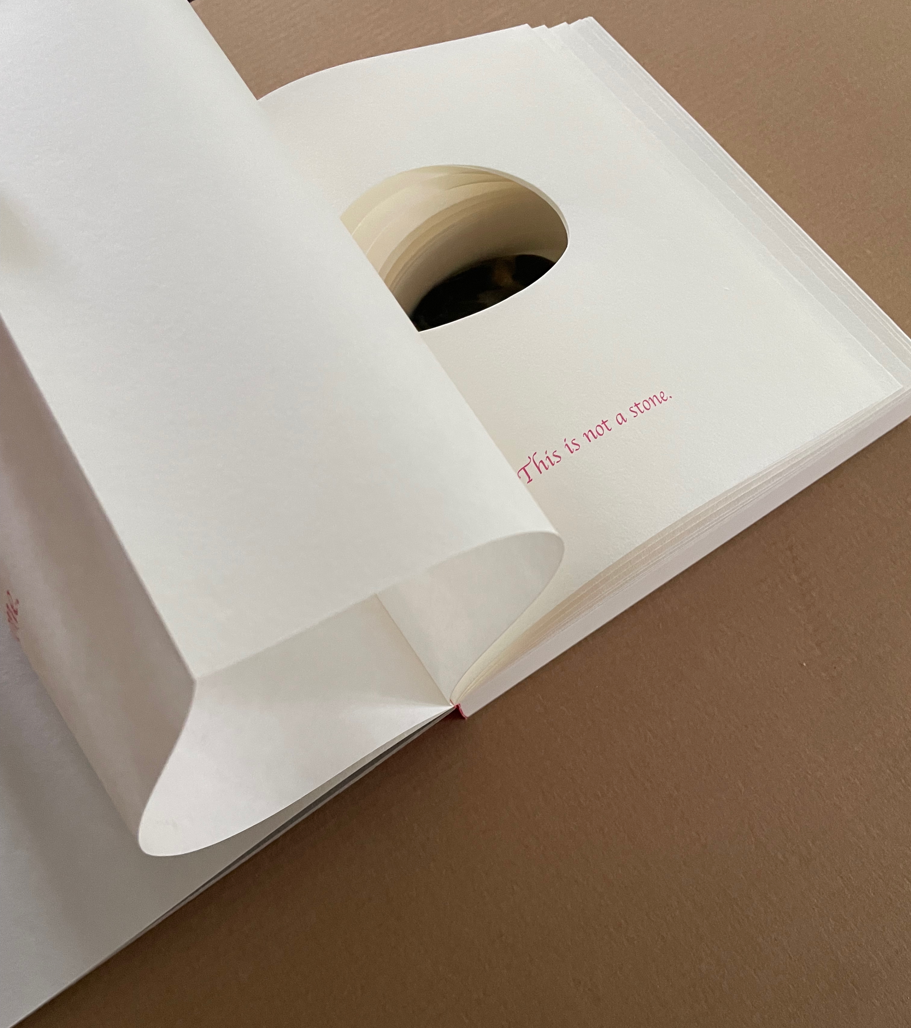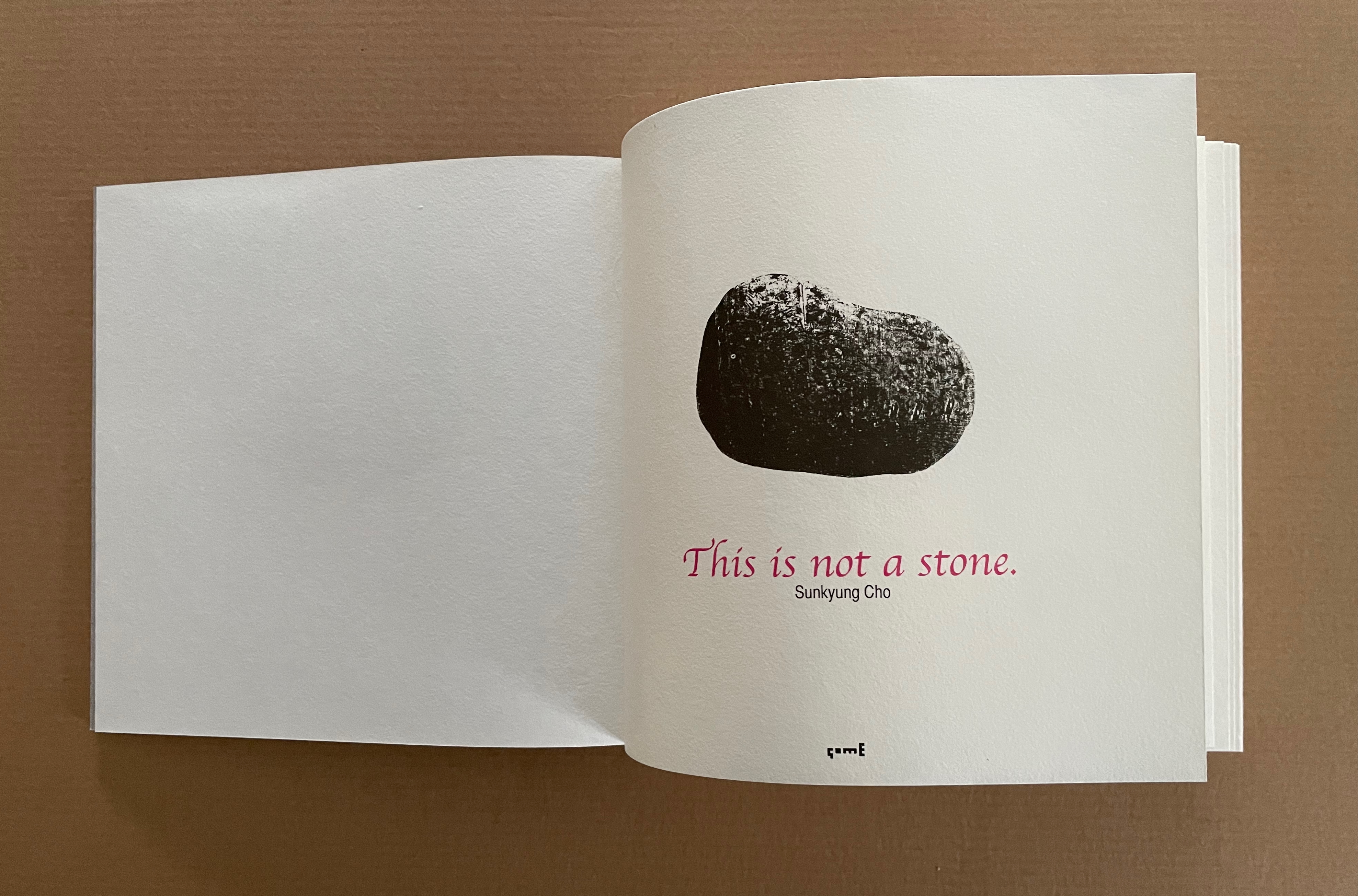 On the artist’s website (www.somebooks.kr), the product page displays this Korean expression and its translation: 하나의 돌은 돌이자 다른 모든 것이다 [“One stone is a stone and everything else”]. It does not appear anywhere in the book, so perhaps it is unfair to invoke it as confirmation of any reading of This is not a stone. On the other hand, if you are going to play “Twenty Questions” with a Cretan philosopher’s stone, cheating may be your best option.