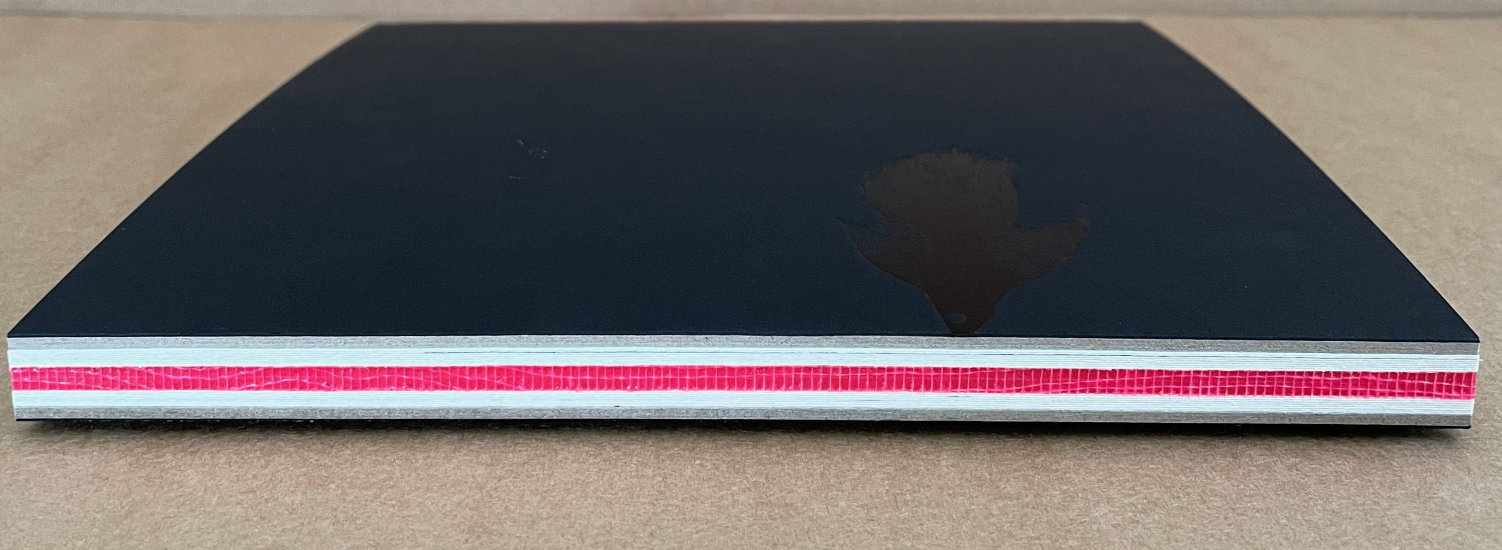 Exposed spine binding with cross weave filament tape, board-covered. 170 x 170 mm. Acquired from SpazioB**K, 6 April 2025.