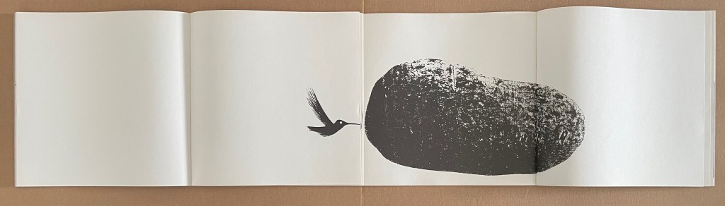 The other works by Sunkyung Cho in the collection are wordless, except for their titles, and lean more toward children’s books than This is not a stone. Like so many artists’ books, they occupy that crossover zone discussed by Sandra Beckett, Johanna Drucker, and Carol Scott (see Further Reading).