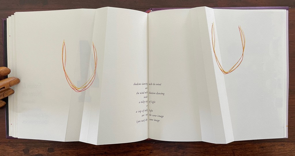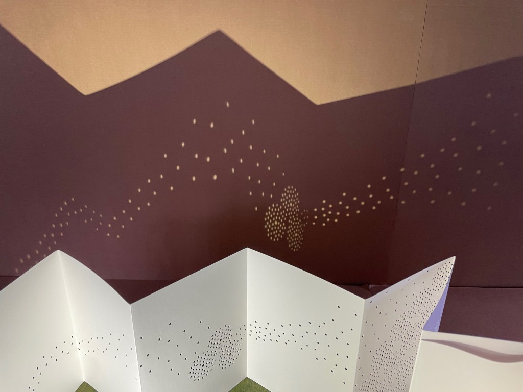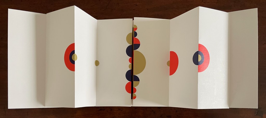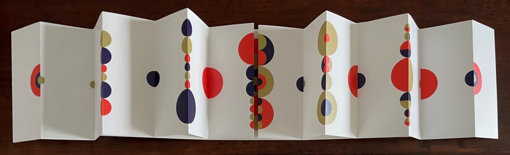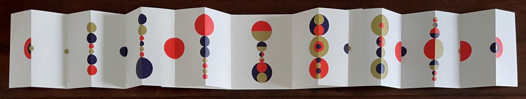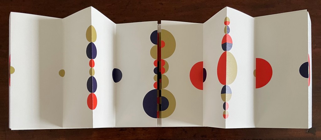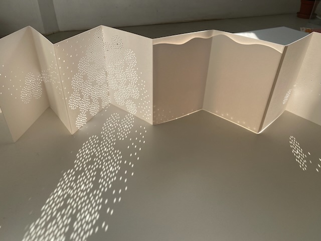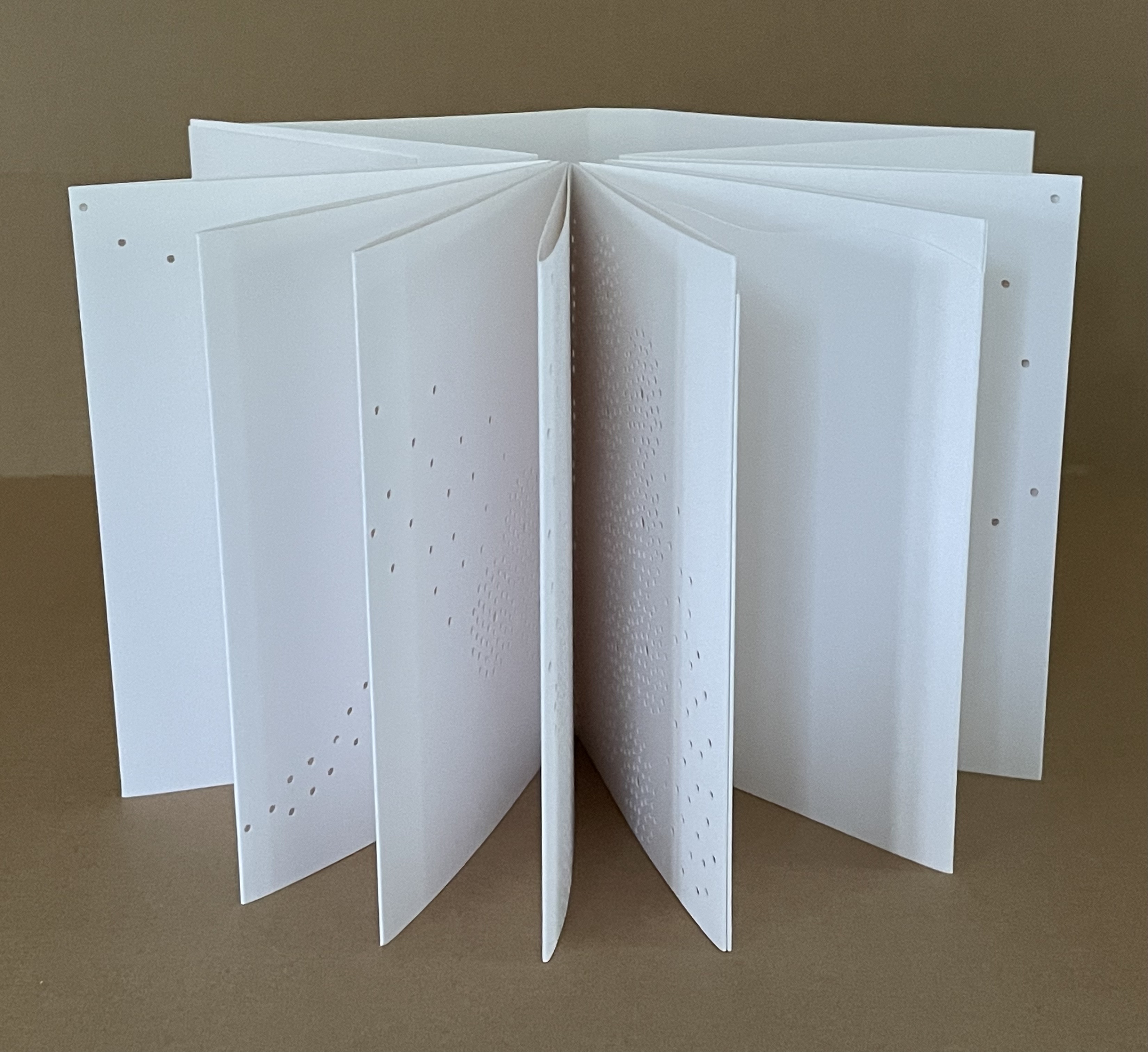 Viewed standing or lying flat, the leporello’s arranged holes echo the seeds leaving the dandelion heads bare in the second stanza of the poem.