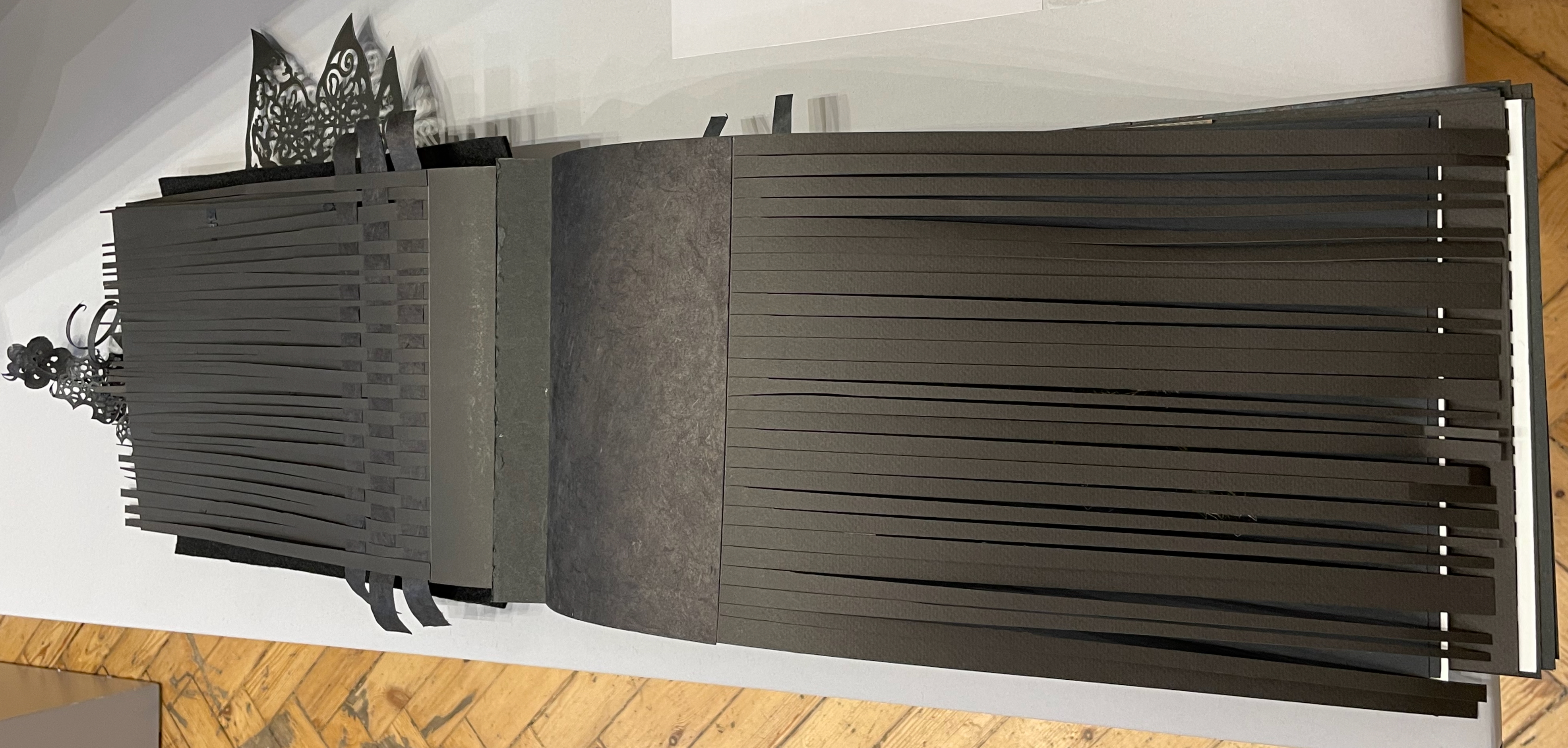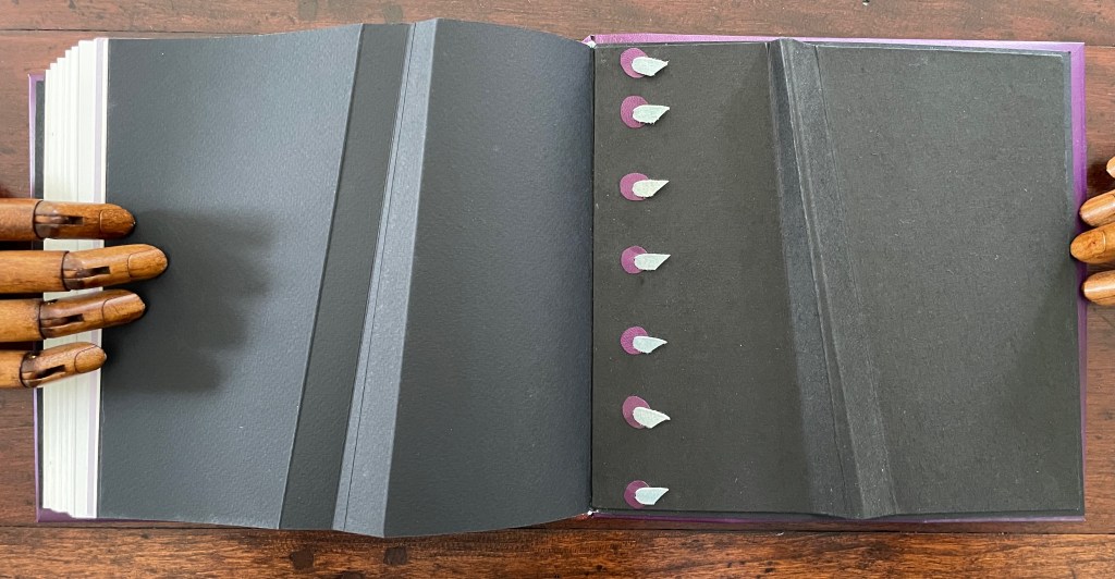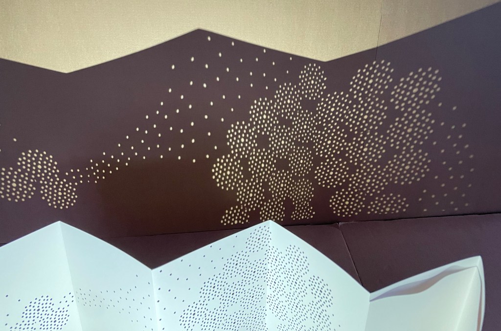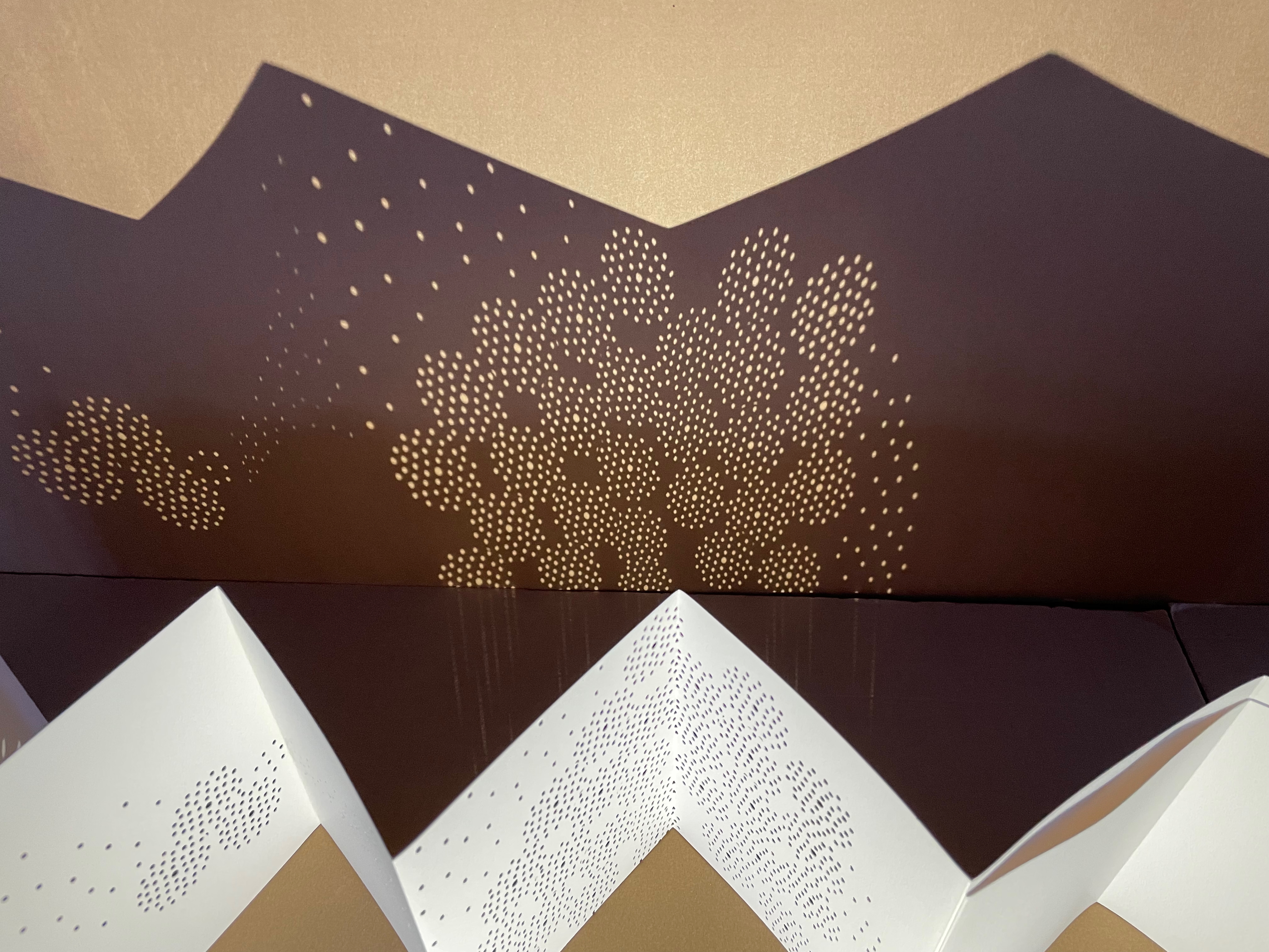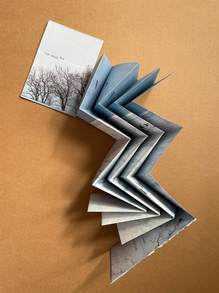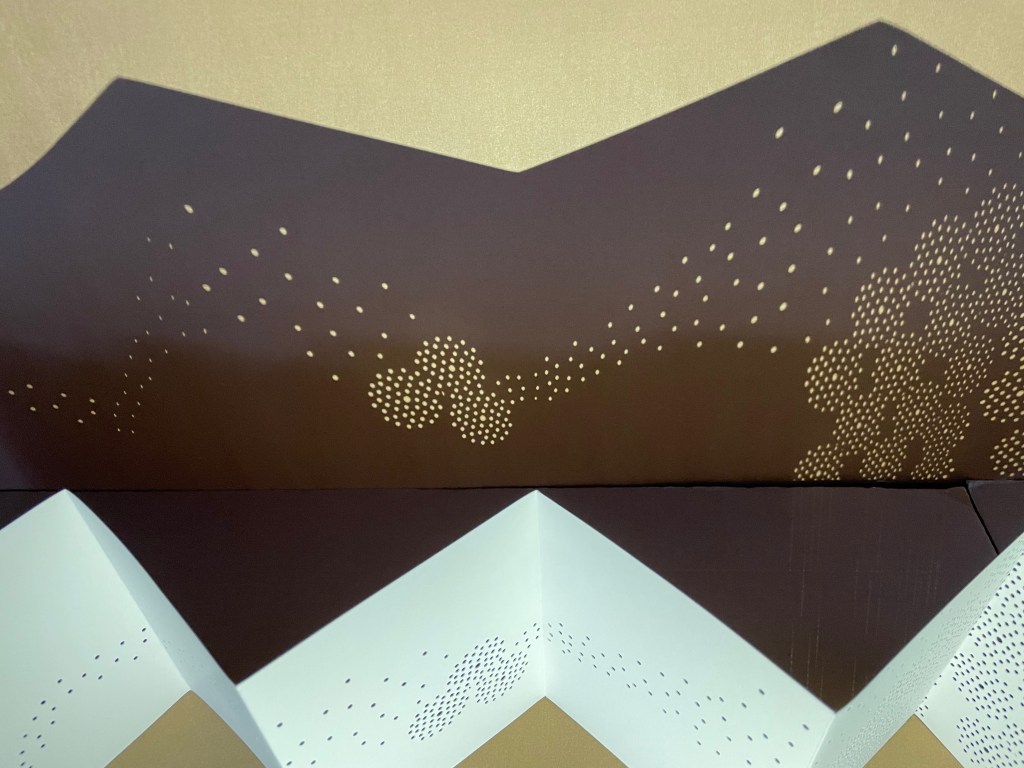 Viewed standing or lying flat, the leporello’s arranged holes echo the seeds leaving the dandelion heads bare in the second stanza of the poem.
