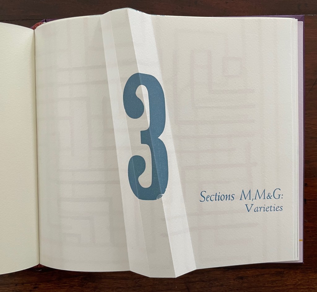 The last section “Sounds of Silence” has only the one entry, and it is a vinyl LP album, not a book. To add to that quibble, there’s oddly no recording of John Cage’s 4″33″ among the tracks of this platter. But as the final entry in the exhibition, it extends the enterprise beyond blankness, rawness, and illegibility to inaudibility!