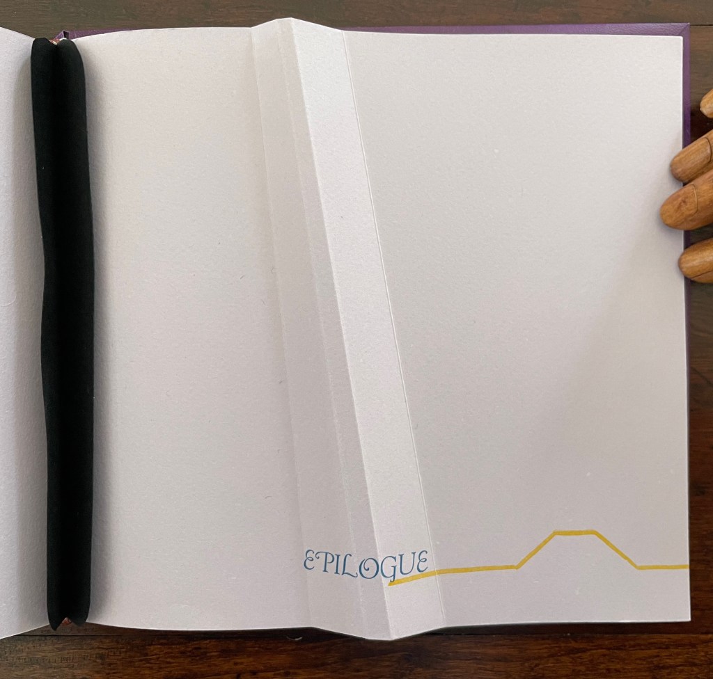 Altogether there are seven gatherings in Lightweight. The “prelims” gathering provides the historical context underlying Cordeiro’s homage. Note the artist’s wish expressed in the envoi to this artist’s book in our hands: “May its message be its medium, may its artistry embrace eternity”. Here, Cordeiro introduces that self-reflexivity we expect in the best of artists’ books.