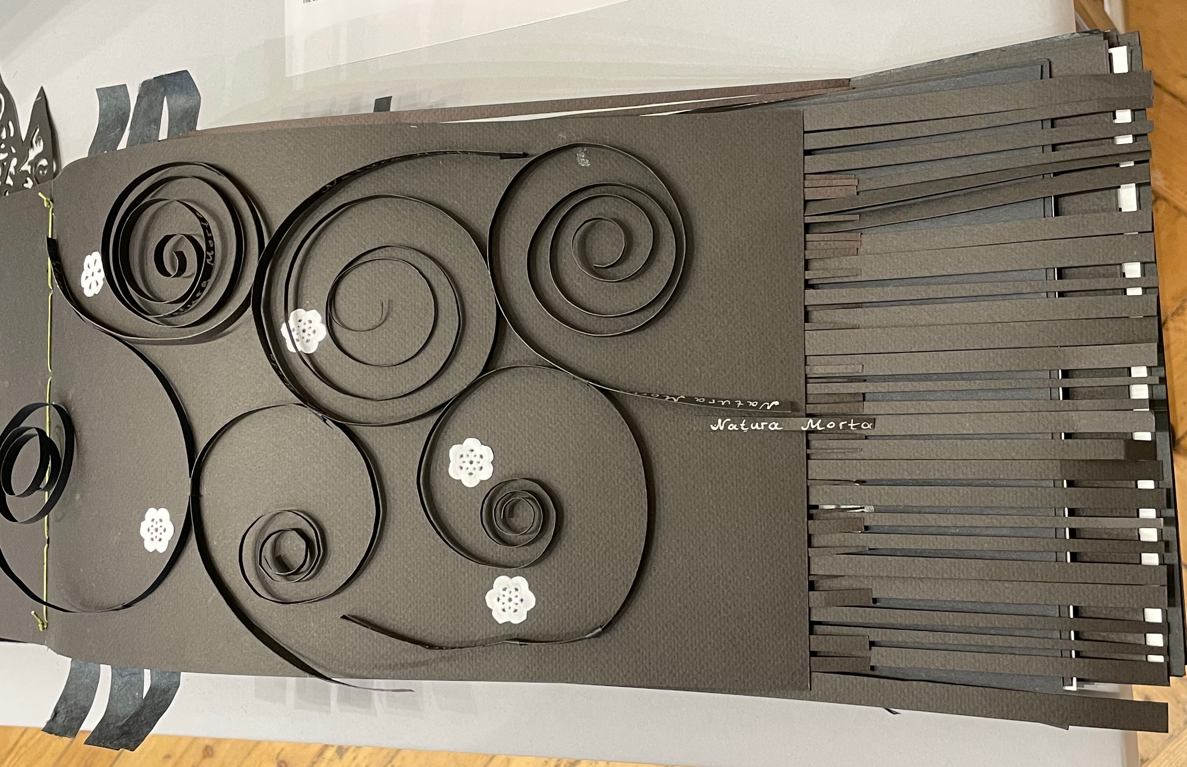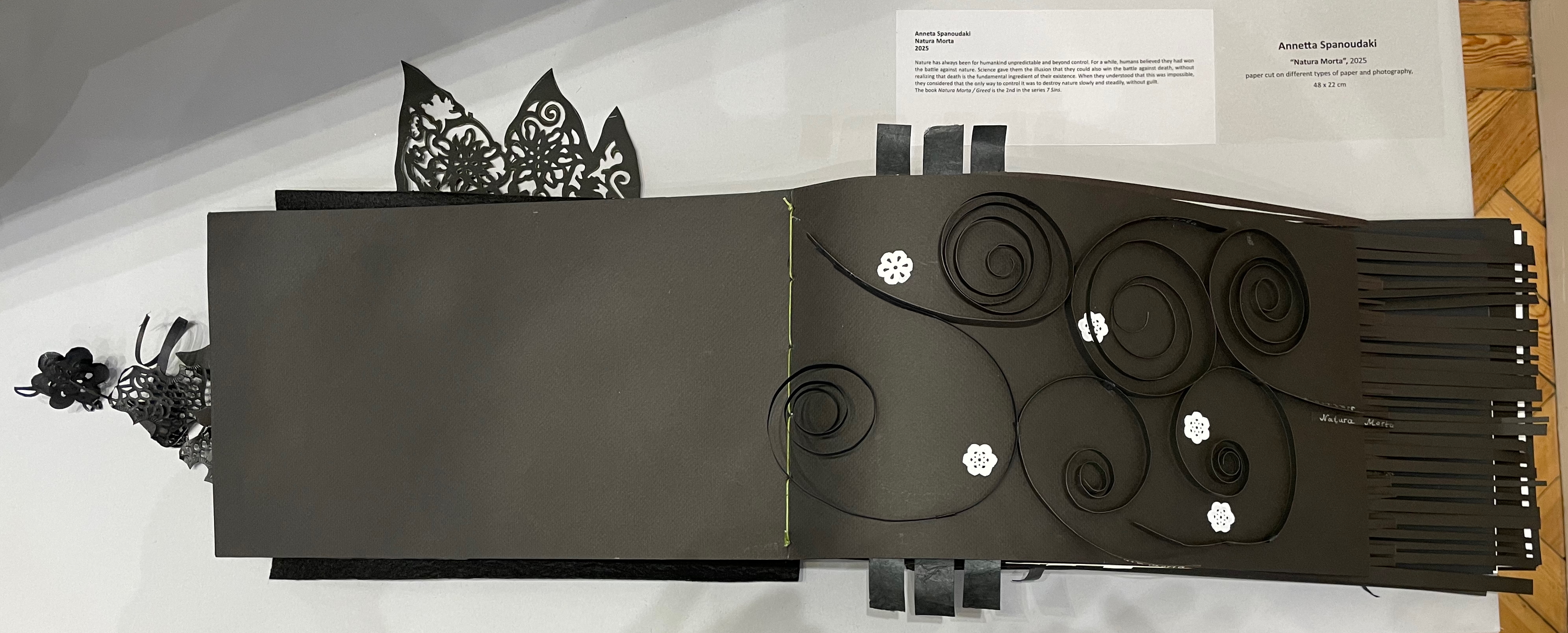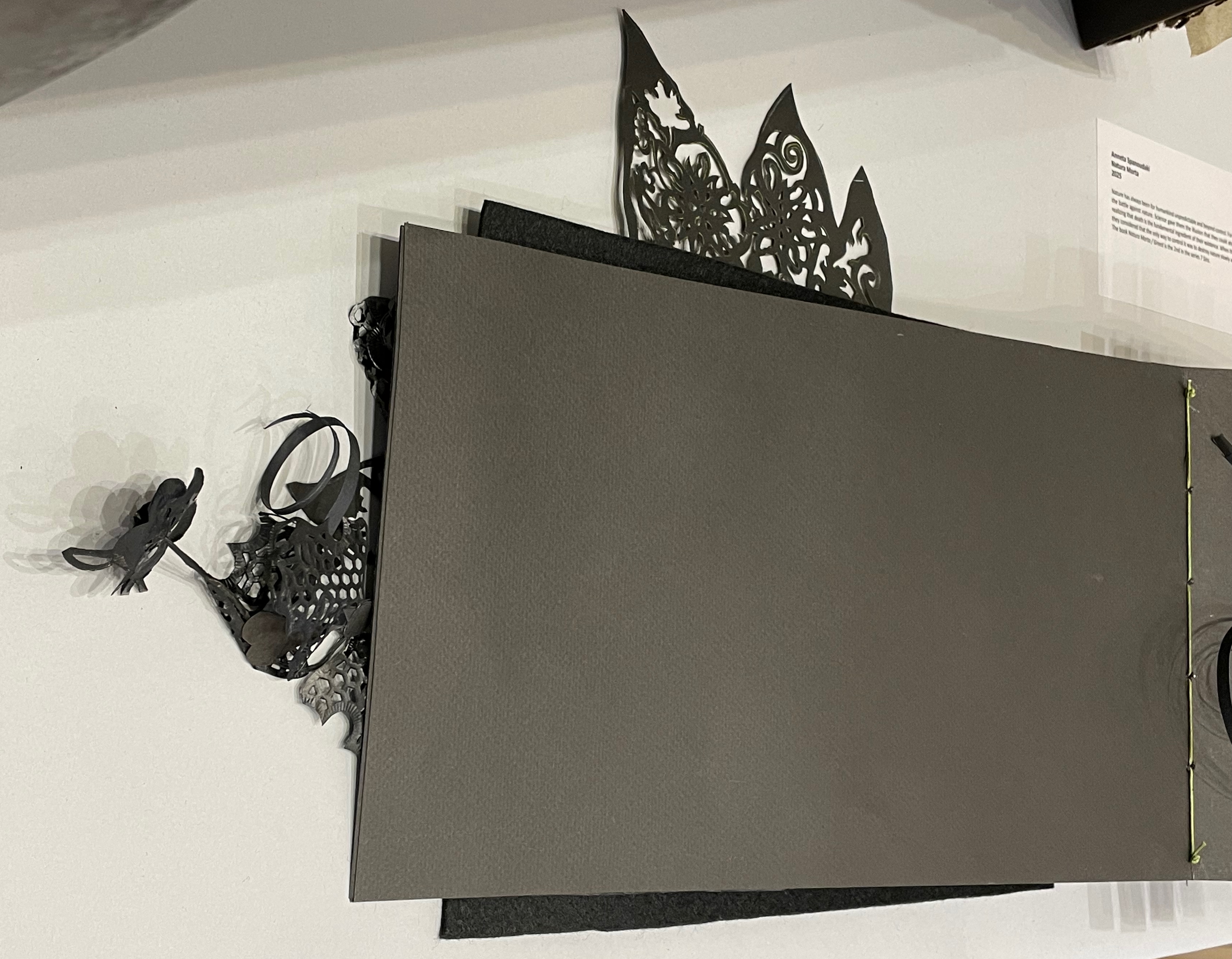 Natura Morta (2025) Anneta Spanoudaki Paper cut on different types of paper and photography. 480 × 220 mm. Photos: Books On Books.