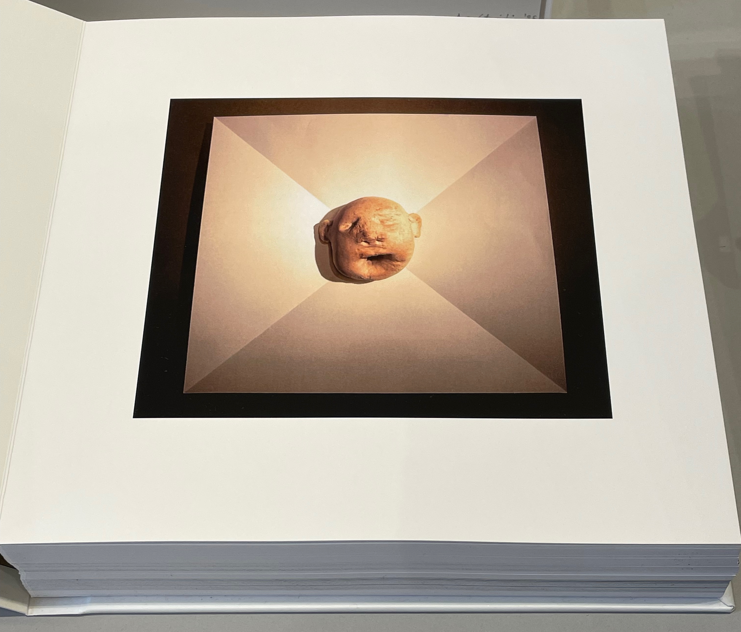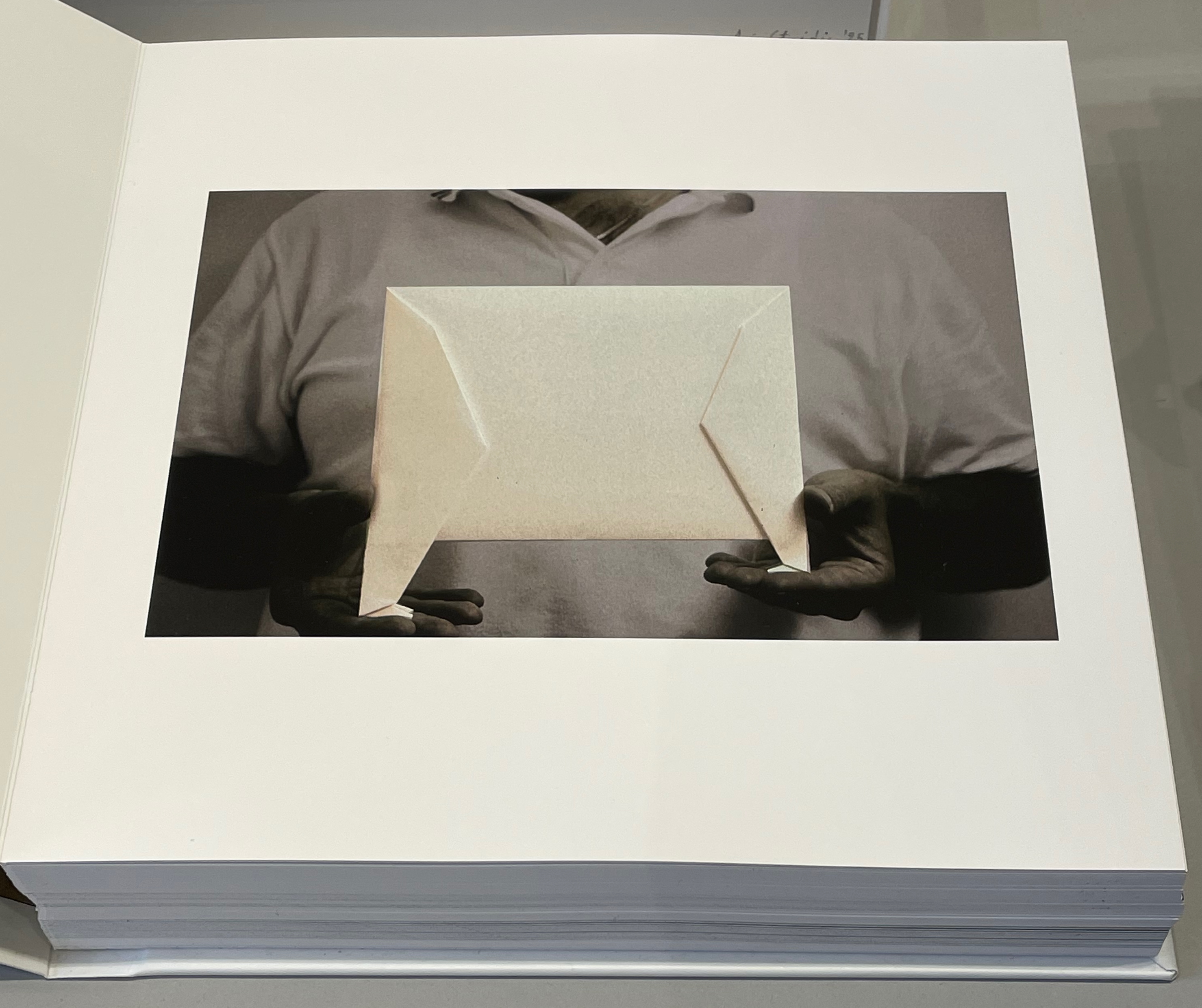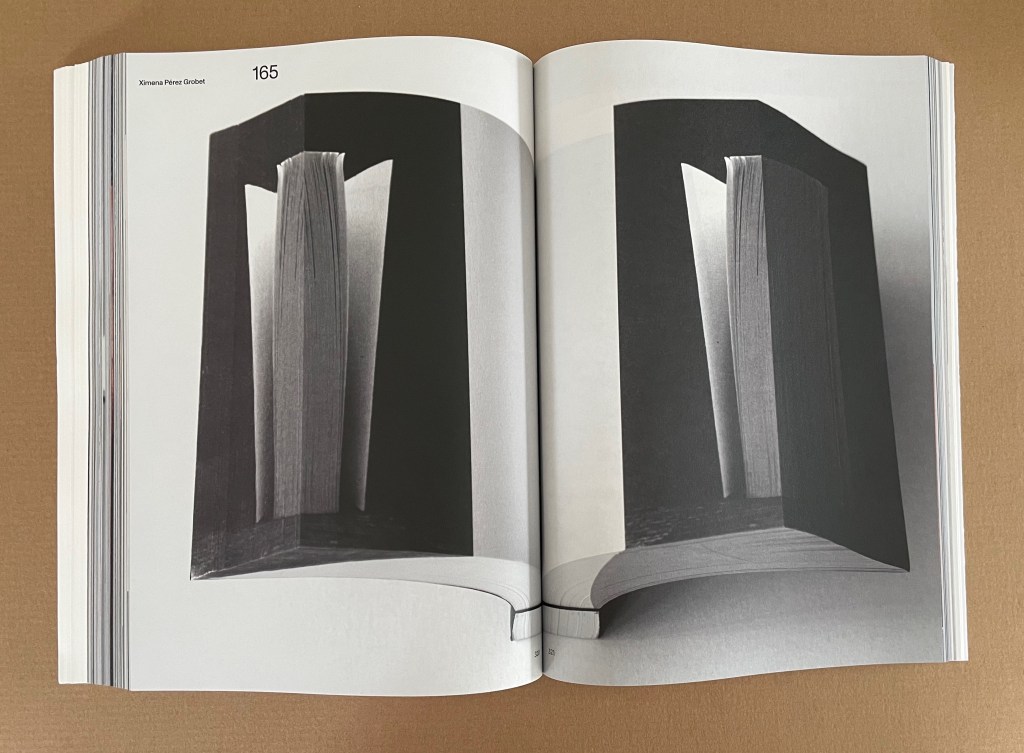 On slightly thinner card, Aris Stoidis’ To the other side and back (2025) carries a sculptural image on every page. The work straddles the borders of sculpture, photobook, and artist’s book. Stoidis writes, “Ever since my first pieces, I have been “receiving” images that I’ve materialized without really comprehending them myself. They simply exerted an inexplicable power on me.” The book comes in a plexiglas box with a papercut sculpture (not pictured here).