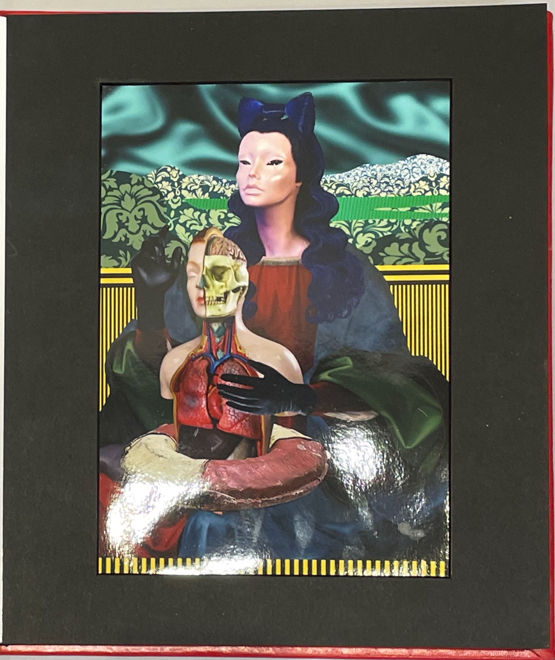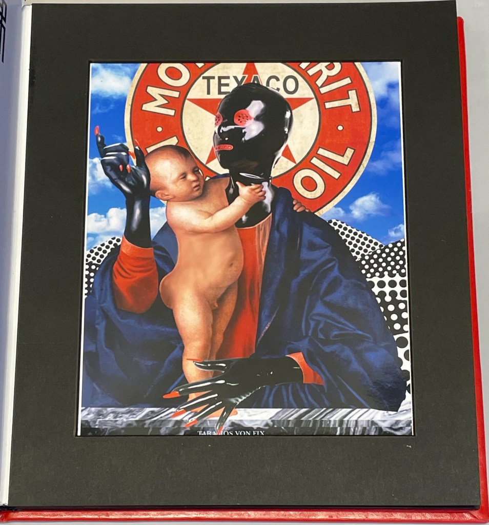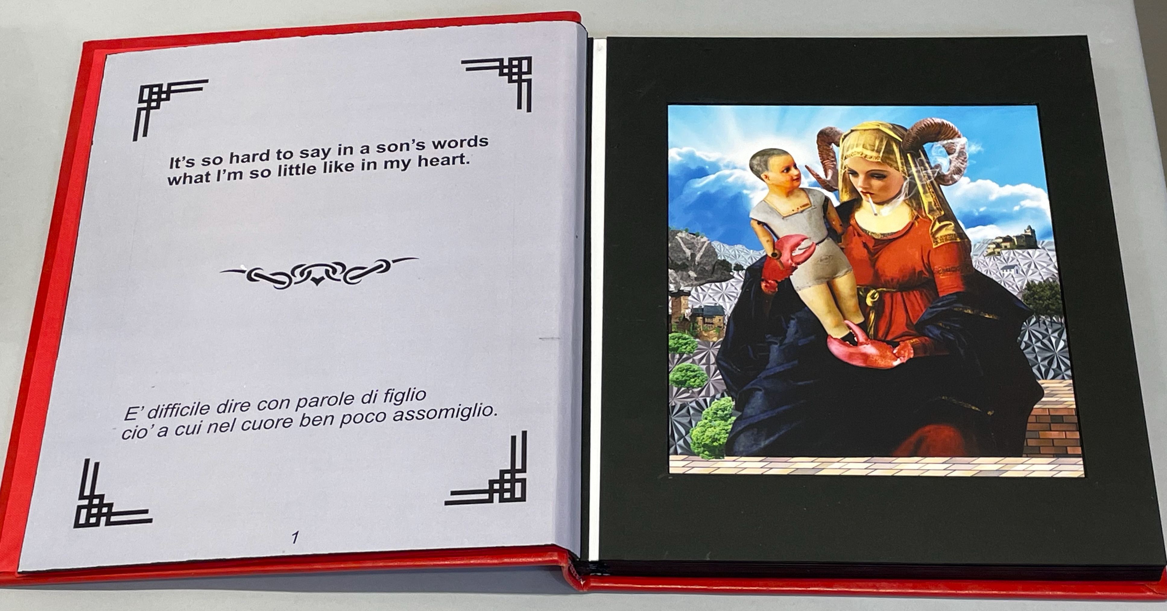 Thick leaves seemed to be the order of the day. On heavy black card, Thodoros Brouskomatis’ 10 Artificial Prayers (2025) presents surreal collages challenging the theme of “Madonna and Child” and couplets from Pier Paolo Pasolini’s “supplica a mia madre”.