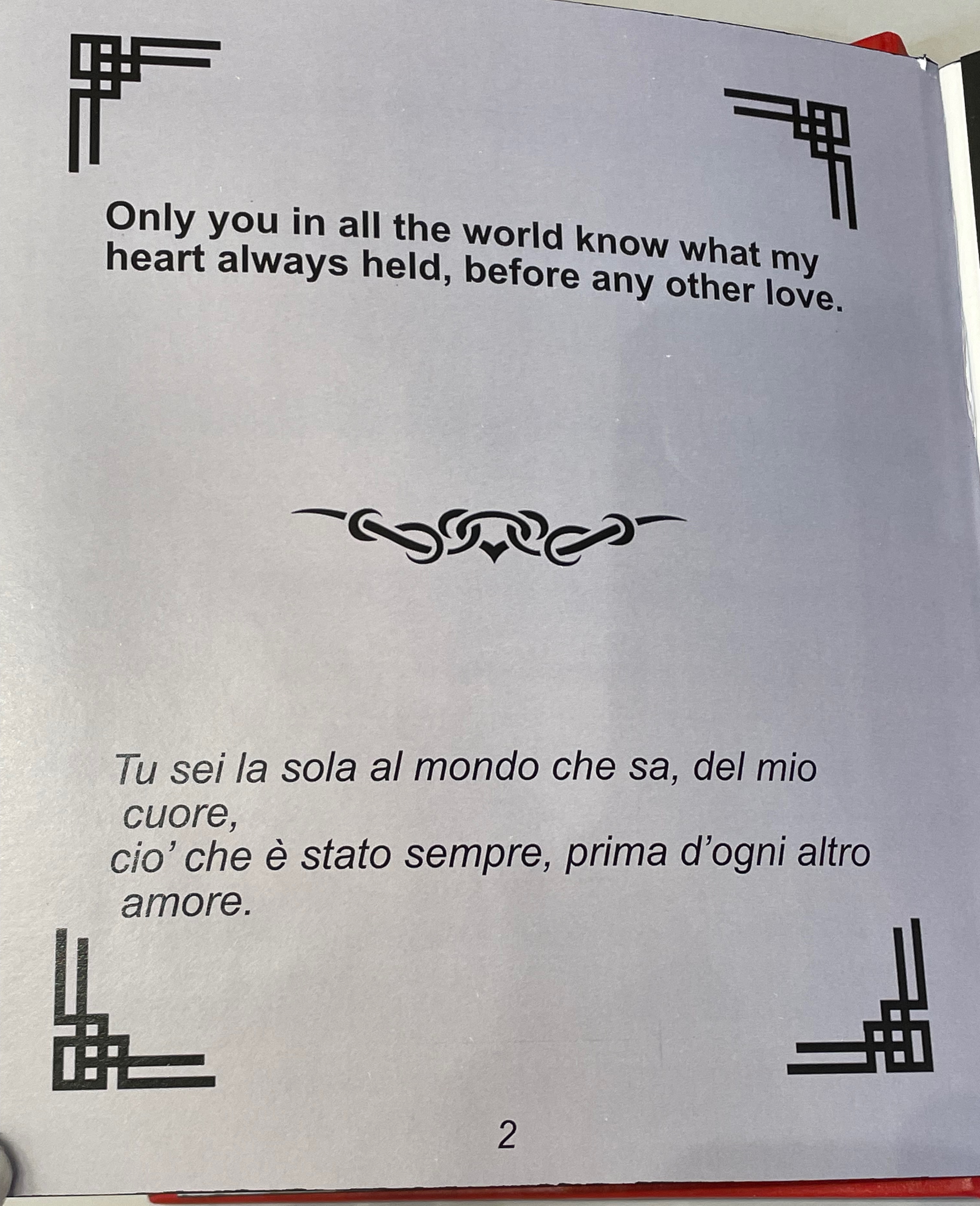 Left: passe-partout (window) on box top. Right: recurrent print motif appearing later in the book.