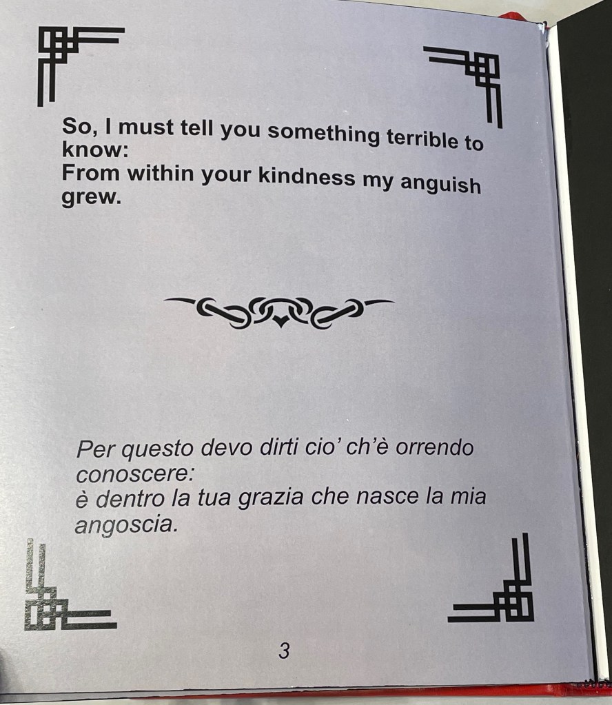 The “Epilogue” tells us, “The handwritten text in Portuguese is a word play with the alliteration afforded by that language between the verb to see and the season summer, and translates roughly as: ‘summer shall see gone that which / by going is now new being. / seeing such an hour at birth is to / be seen alive.” Another continuum.