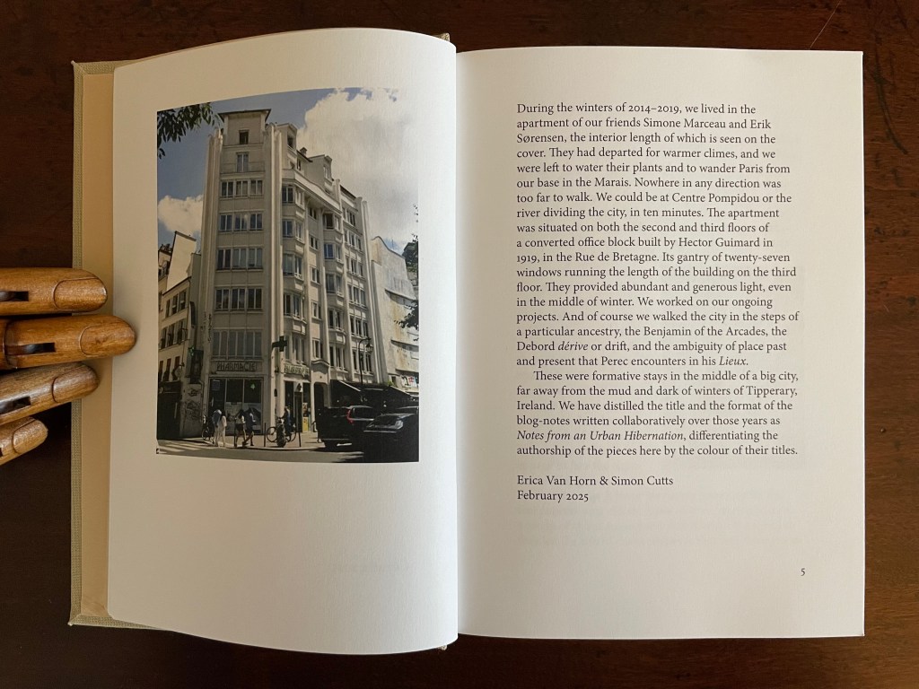 Walking the Portes: Winters in Paris 2014-2019 (2025) Simon Cutts and Erica Van Horn Casebound, book cloth over boards, blind stamped and inked spine, photo pastedown in recess on front cover, plain doublures. H182 x W132 mm. 216 pages. Edition of 300. Acquired from Books about Art, 15 September 2025. Photos: Books On Books Collection.