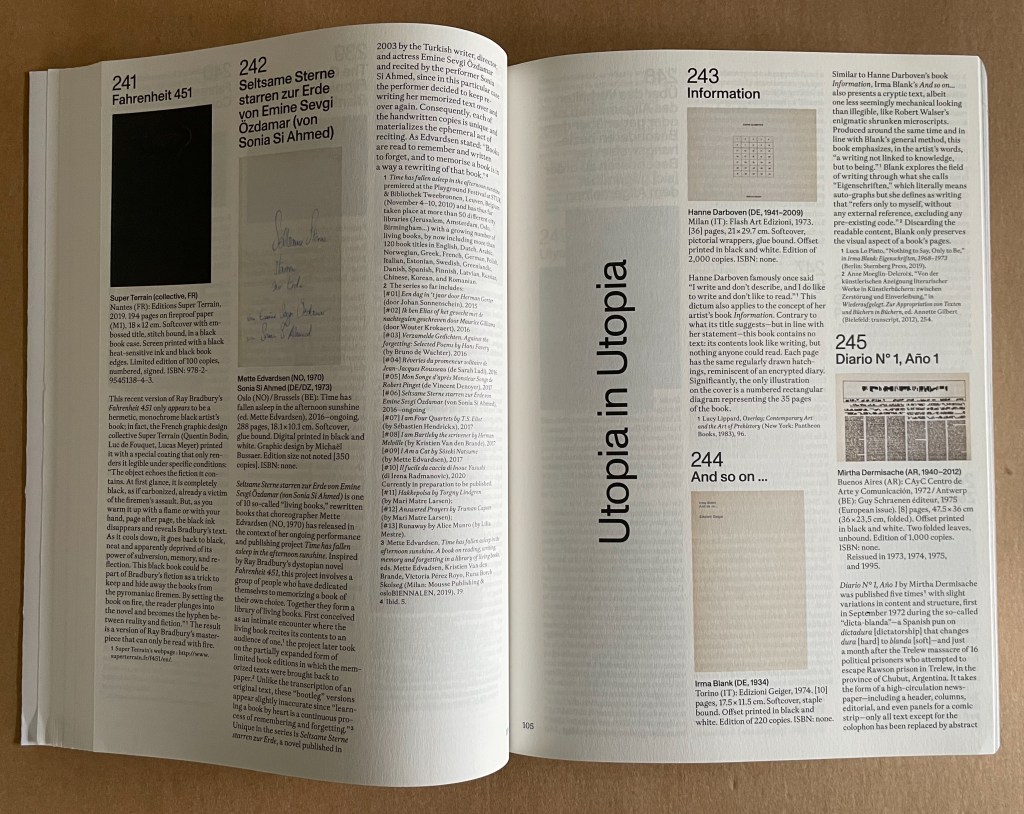 Above all, Blank. Raw. Illegible. … Artists’ Books as Statements (2023) demonstrates that the book constitutes a medium for, and genre of, Art. No library or collection that aims to represent book art or Art should be without it.