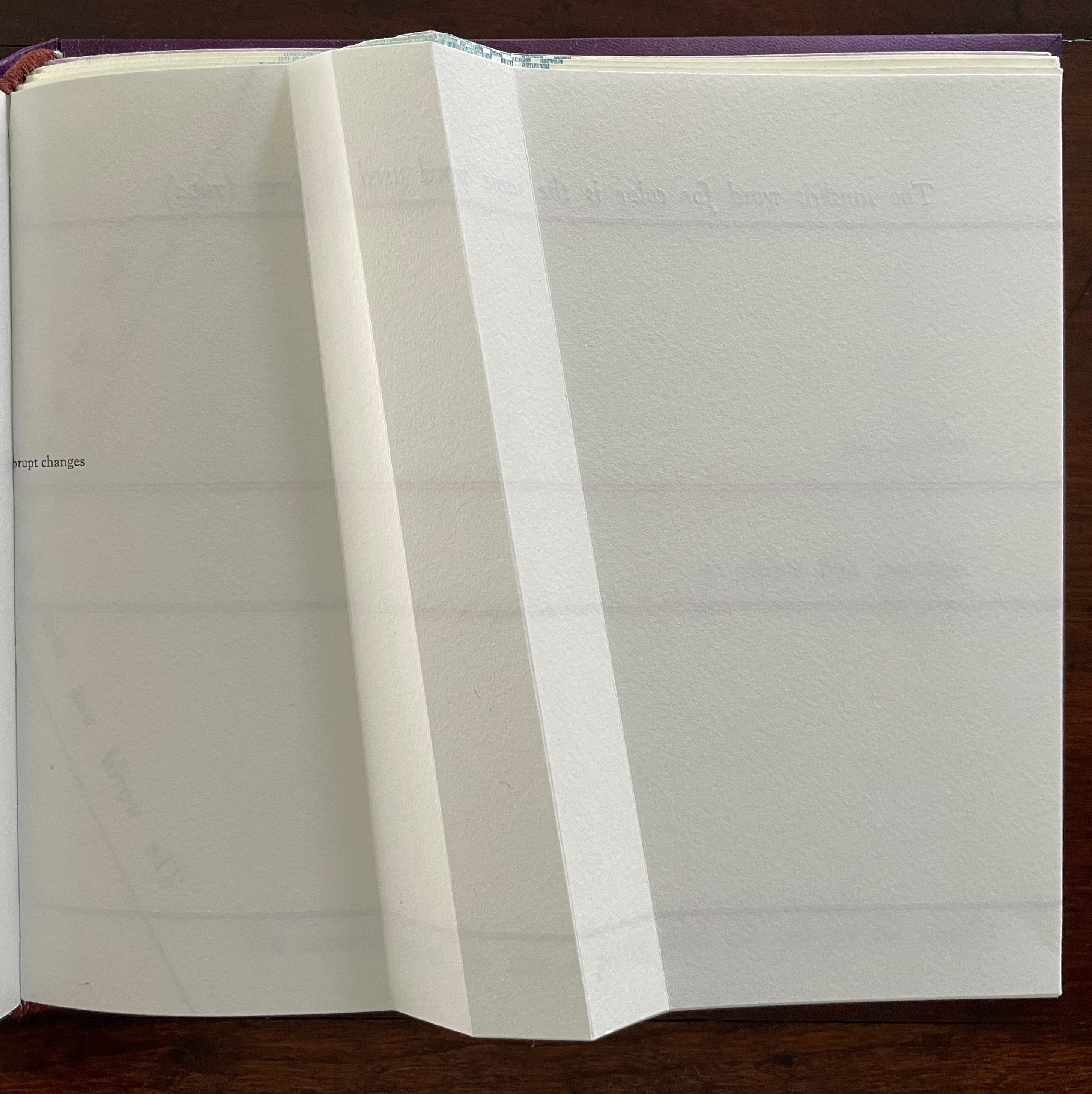 View of “pages 5 and 8” separated by a detailed view of the break in the word “abrupt”.