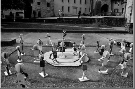 The installation Rosace, highlighted above, enhances the architectural features of the village. (For commentary to accompany your visit to Rosace, see My Modern Met.) Another, more surreal installation Livritins populates the village with book-citizens (the “livritins”) engaged in exercise, descending from the church spire by umbrella gondolas, listening to a sermon, fishing, dancing and much more. That year, tourists would be forgiven for believing that all of the bookstore and library bookshelves in the village and canton stood empty.